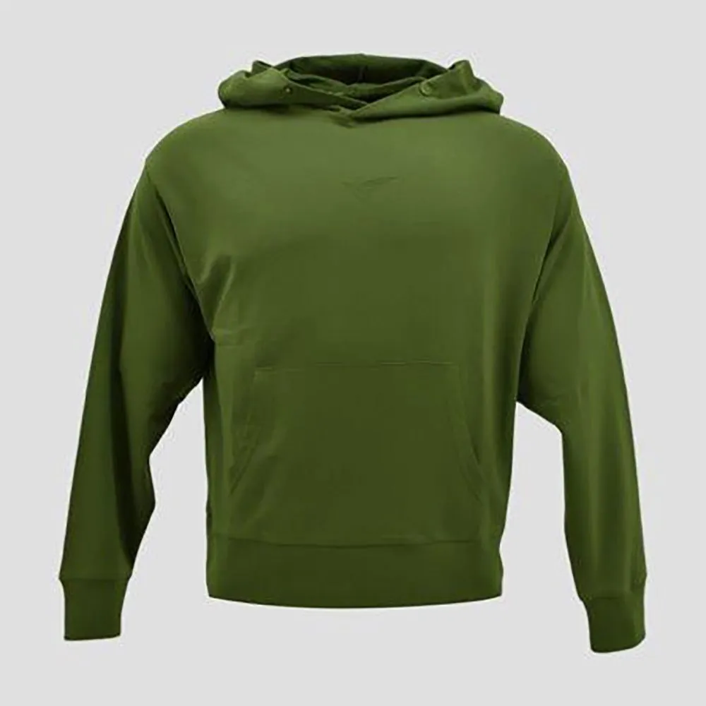 Design wyróżnia się przemyślanymi i funkcjonalnymi detalami. Subtelny, ton w ton gumowany nadruk z logo na piersi dodaje nowoczesnej tekstury i dyskretnego brandingu, odzwierciedlając minimalistyczną estetykę, która jest zarówno szykowna, jak i ponadczasowa. Konstrukcja typu pulower, bez zamka błyskawicznego, oferuje czystą, nieprzerwaną sylwetkę. Kluczowa jest funkcjonalność, z przestronną kieszenią kangurką z przodu, zapewniającą wygodne miejsce do ogrzania rąk lub przechowywania niezbędnych rzeczy, takich jak telefon i klucze. Wyróżniającą cechą jest obszerny kaptur z unikalnym klipsem na szyję – innowacyjnym detalem, który pozwala na regulację zakrycia i bezpieczne, spersonalizowane dopasowanie, chroniąc Cię przed żywiołami, jednocześnie dodając Twojemu wyglądowi wyraźnego, technicznego charakteru.