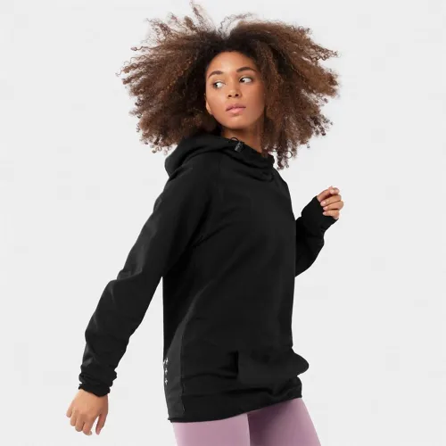 Wnętrze wykończone jest miękkim, szczotkowanym polarem, który zapewnia dodatkową warstwę ciepła i miękkości, dzięki czemu idealnie nadaje się na chłodniejsze dni lub relaks po treningu. Jej doskonała oddychalność zapewnia komfort bez przegrzewania, płynnie dopasowując się zarówno do aktywnych, jak i spokojnych chwil. Ponadczasowy czarny kolor i subtelne, minimalistyczne kwadratowe logo na piersi tworzą wyrafinowaną i wszechstronną estetykę, która doskonale pasuje do każdego stroju. Ubierz ją z dżinsami i botkami lub zachowaj swobodny styl z legginsami i sneakersami — bluza z kapturem Black Square to Twoje płótno do wyrażania siebie.