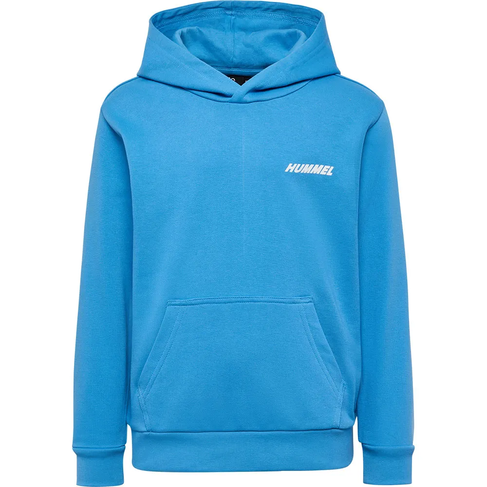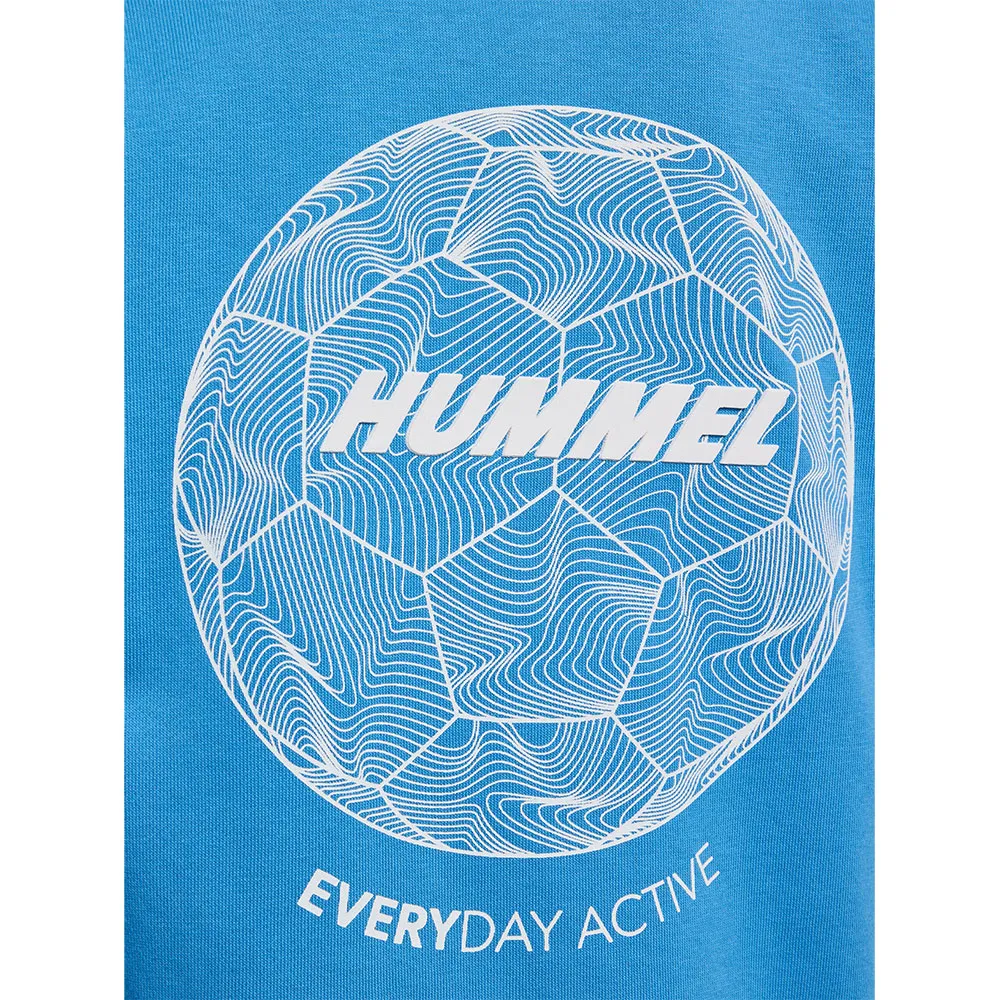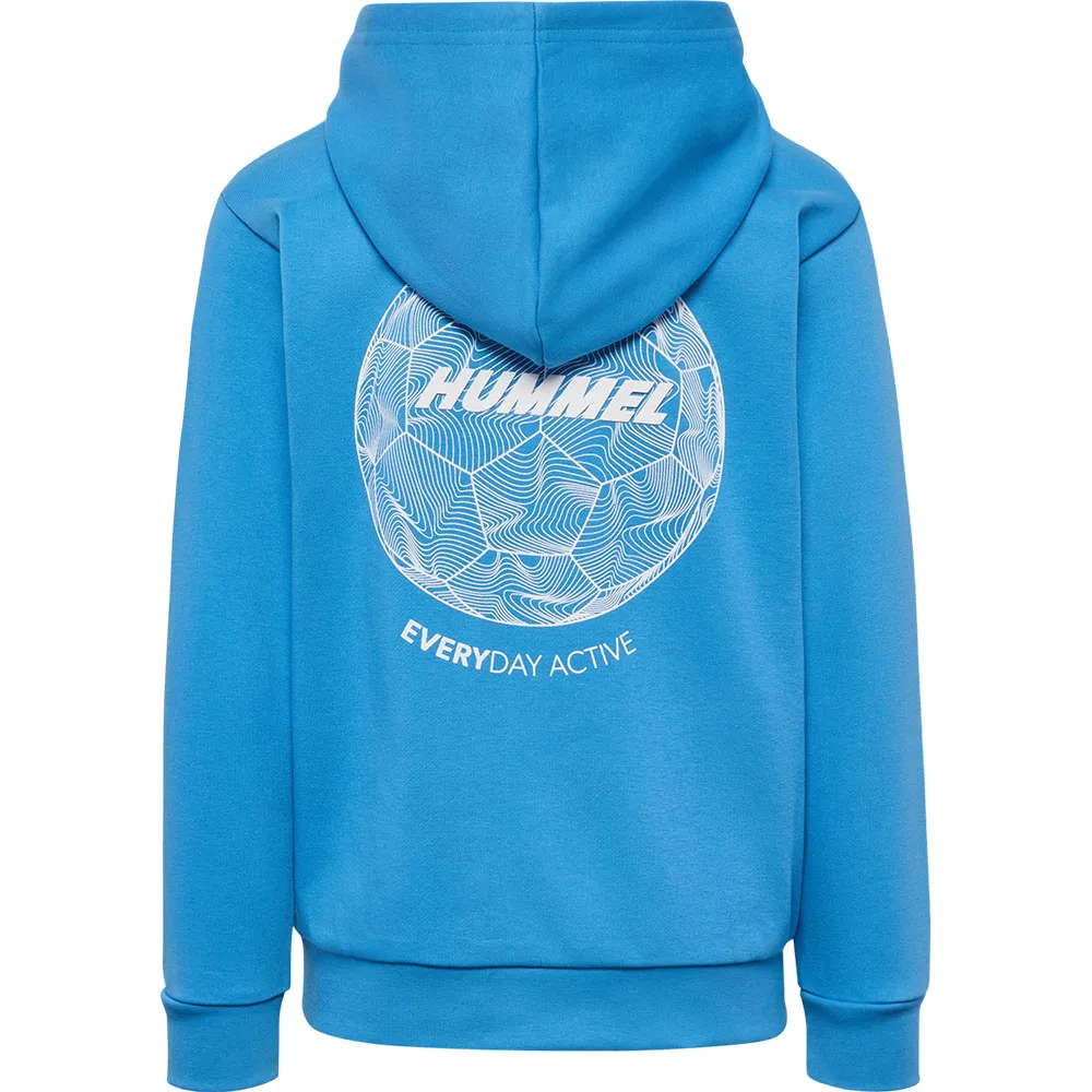 Ele apresenta uma estampa grande e decorativa nas costas, um logotipo da hummel no peito e um bolso canguru clássico na frente.