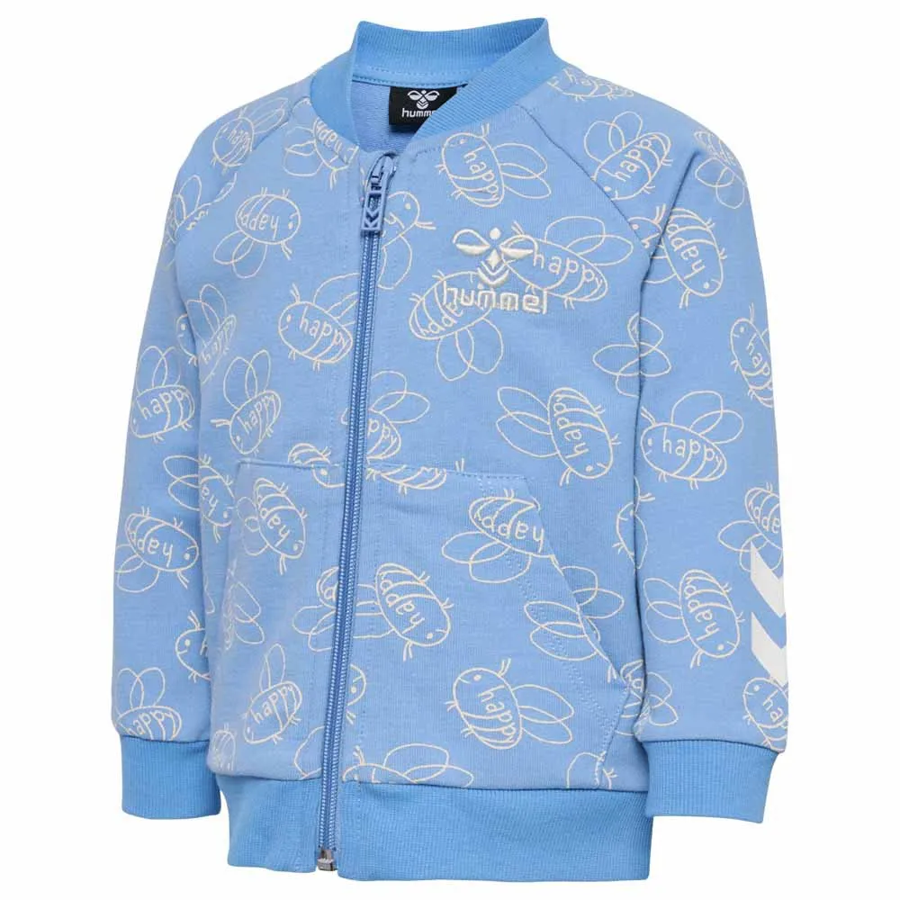 O tecido de moletom de algodão do qual este casaco com zíper hummel® é feito é durável e macio na pele da criança.