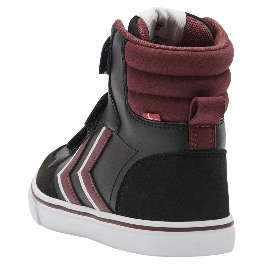 O design elegante do stadil pro Jr se encaixa perfeitamente no visual ou no guarda-roupa do seu filho com uma parte superior de couro stadil com chevrons exclusivos nas laterais. Estas sapatilhas de cano alto hummel® são seladas com uma sola totalmente em borracha para uma excelente aderência e absorção de impacto para quando estão em movimento, juntamente com três fechos de velcro cortados à medida para proporcionar o ajuste perfeito. Esses treinadores têm uma largura normal a larga.