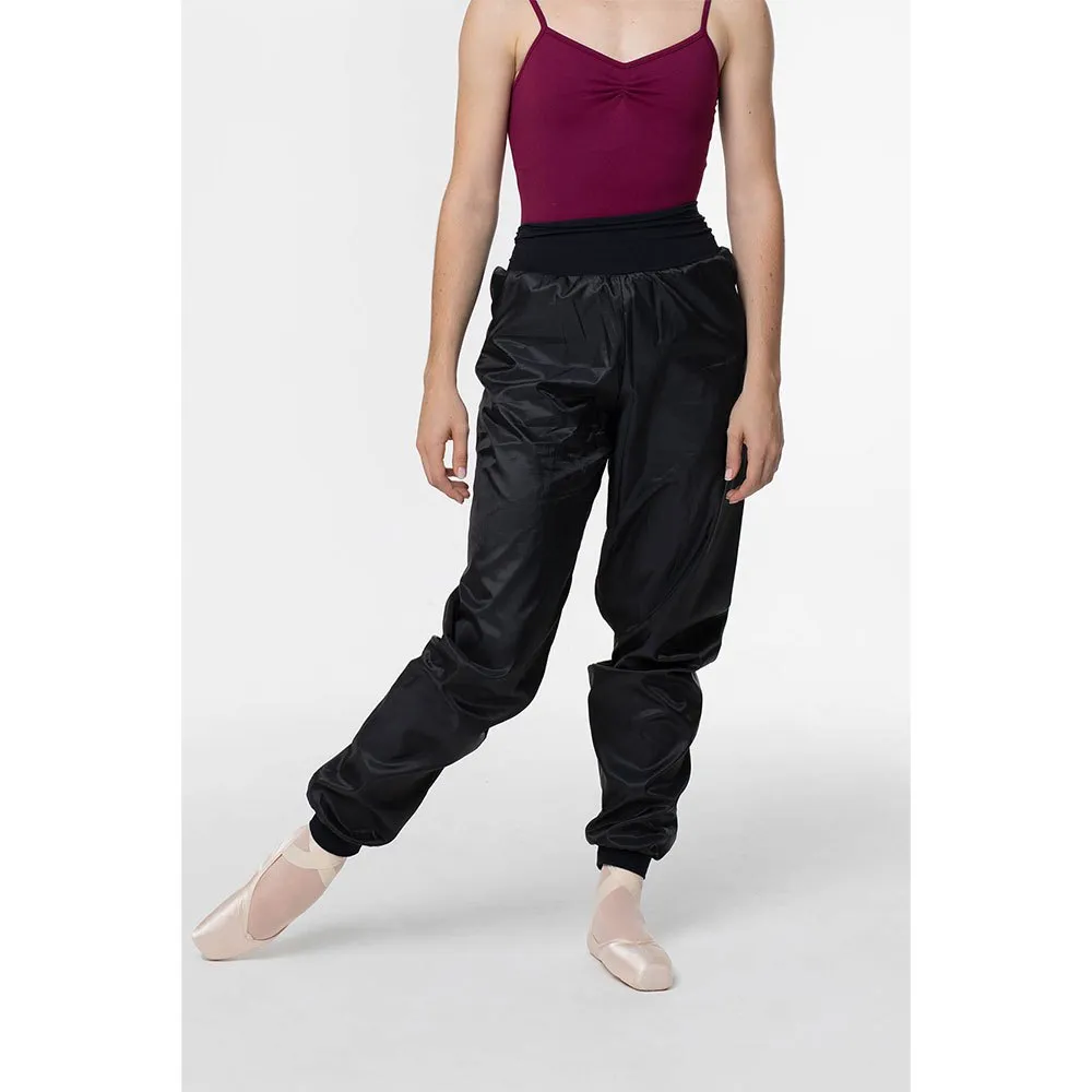 Calças de ginástica com bolsos e efeito sauna.