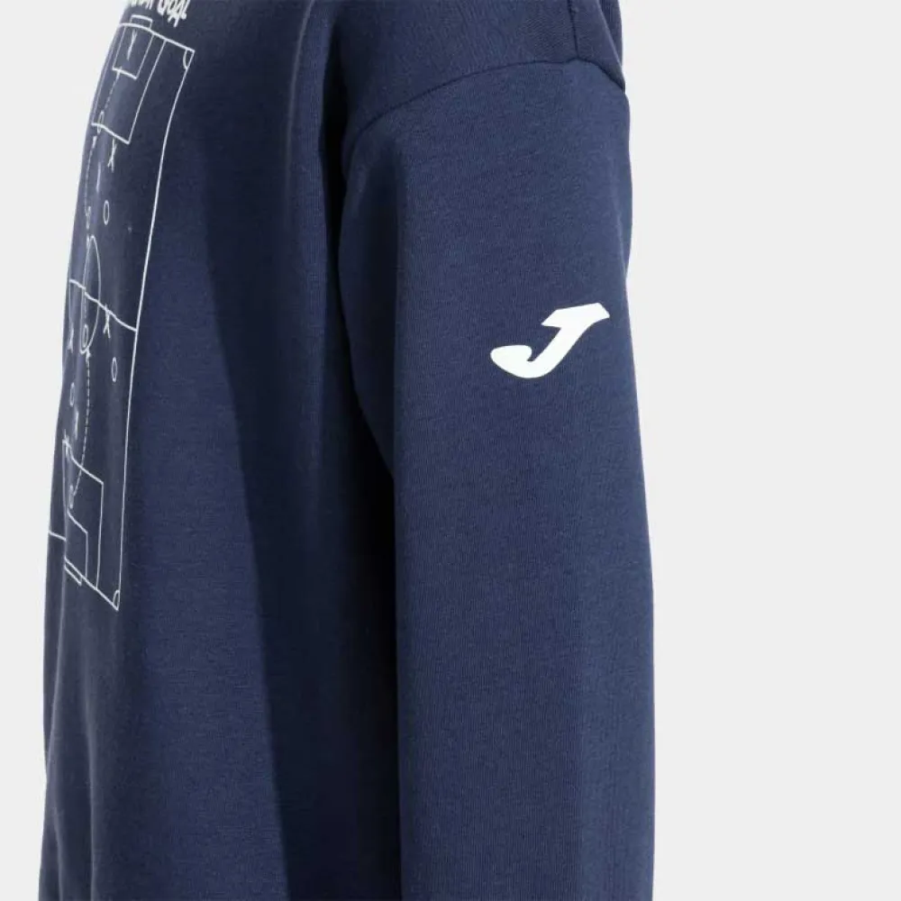 Moletom para meninos/meninas. Projetado com conforto e estilo em mente, este moletom é perfeito para manter os pequenos aquecidos e confortáveis durante todo o dia. Ideal para qualquer atividade, combina funcionalidade e moda em uma única peça. Blusa com ribana na gola para um ajuste perfeito, elásticos nos punhos e na barra para maior conforto e tapa costura interna para evitar atrito na pele. Fabricado principalmente com algodão, um tecido de alta qualidade que proporciona suavidade à pele e grande durabilidade. O interior em fleece oferece calor e conforto excepcional durante o uso. Portanto, este moletom garante alto desempenho: calor, suavidade, respirabilidade, conforto e leveza. Logotipo Joma em estampa junto com um design que adiciona um toque divertido e original, que agradará às crianças.