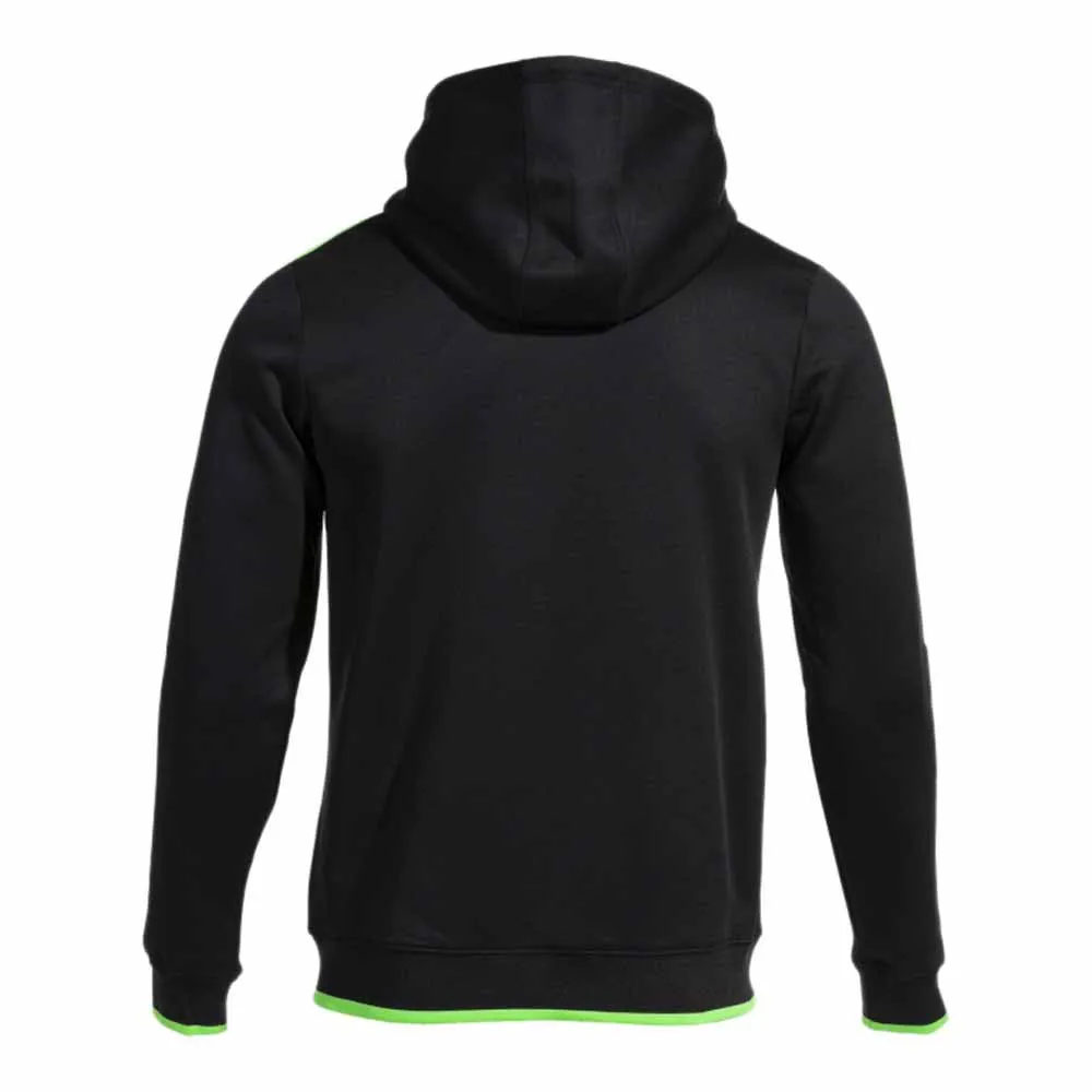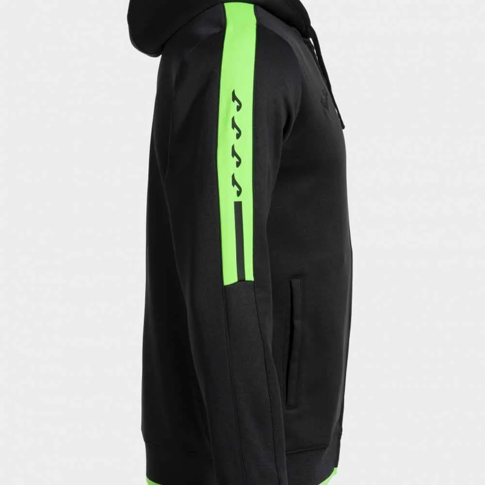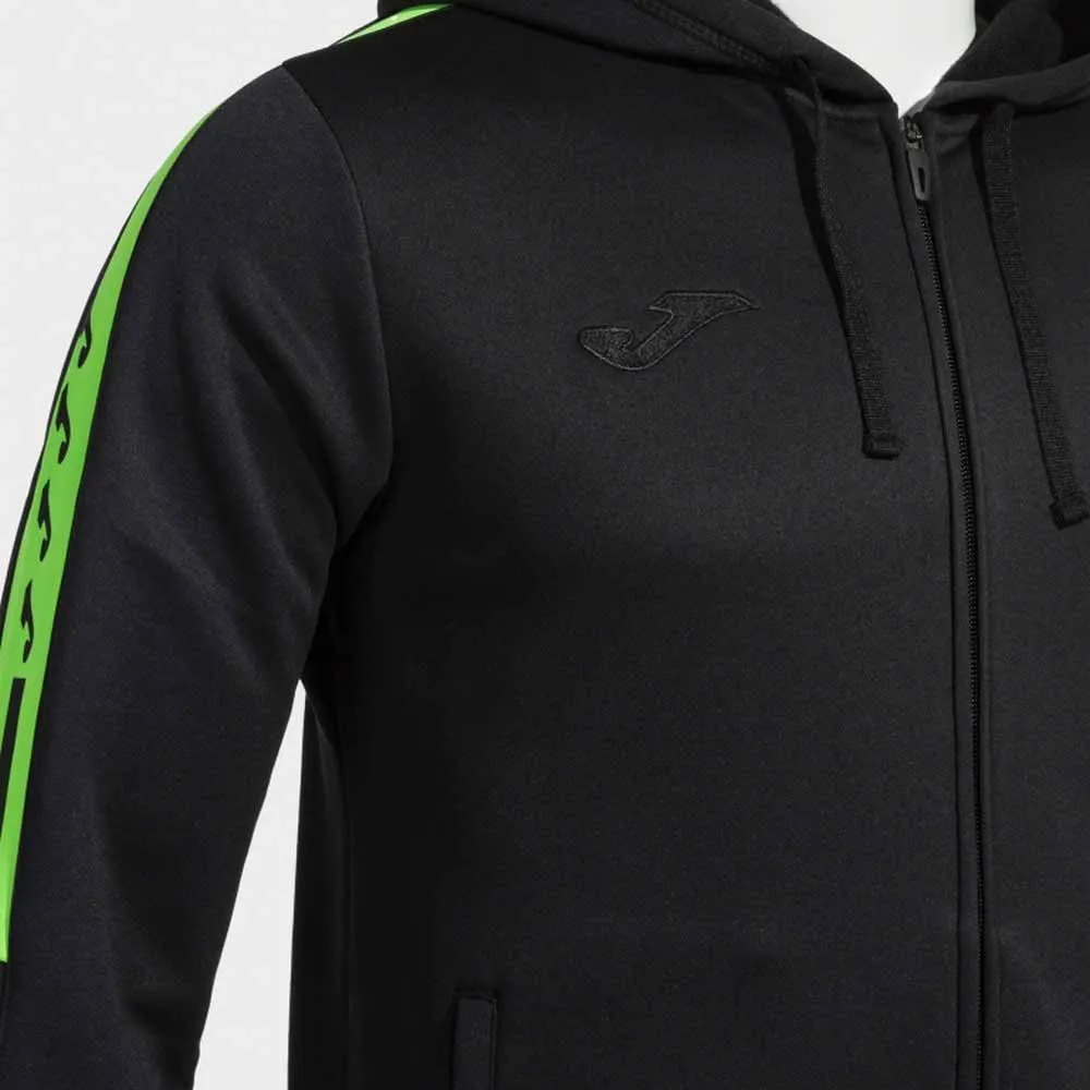 Casaco com fecho de correr. Esta versátil jaqueta, adequada para vários desportos, é perfeita para manter o calor durante os treinos. Possui fecho de correr completo, capuz ajustável com cordões e cobertura elástica interior para otimizar o ajuste e evitar possíveis frições. Também possui punhos e bainha ajustáveis com nervuras. Possui dois bolsos frontais sem fecho, perfeitos para guardar pequenos objetos pessoais. Feito com tecido macio e confortável. Interior em fleece para maior aquecimento em baixas temperaturas. Projetado com desenhos personalizados nos ombros. Logotipo Joma bordado.