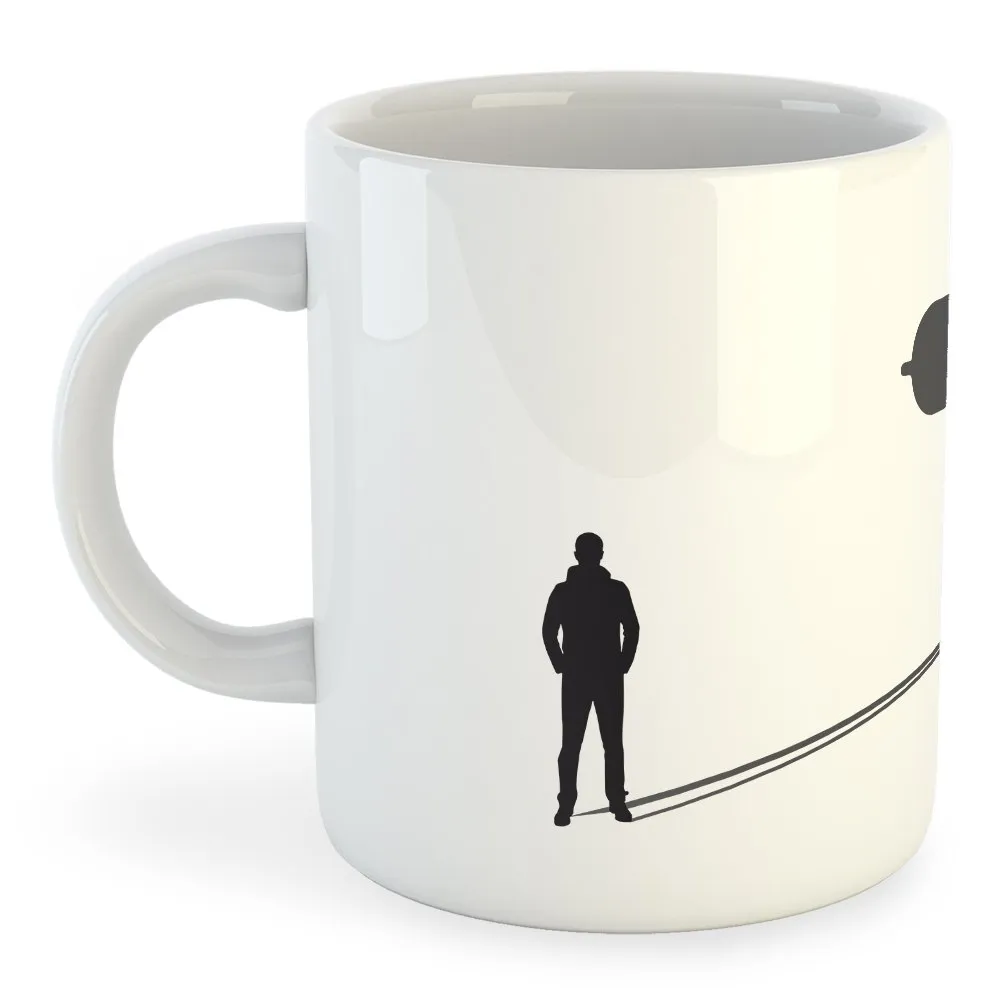 Caneca de cerâmica branca com um design único e divertido.