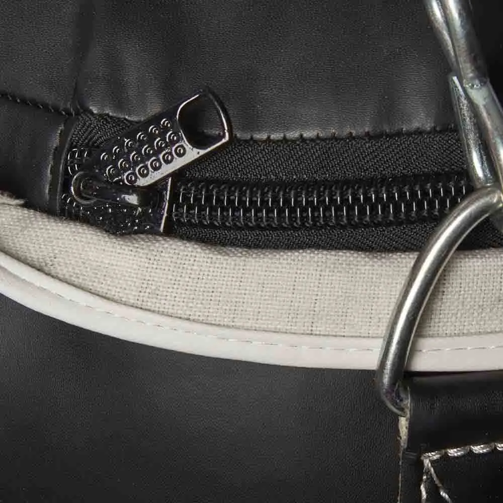 Feita com couro sintético extra resistente, esta bolsa pesada é um item feito à mão. O enchimento interno garante recursos anti-choque. Possui também um prático fecho de correr e correntes suspensas.