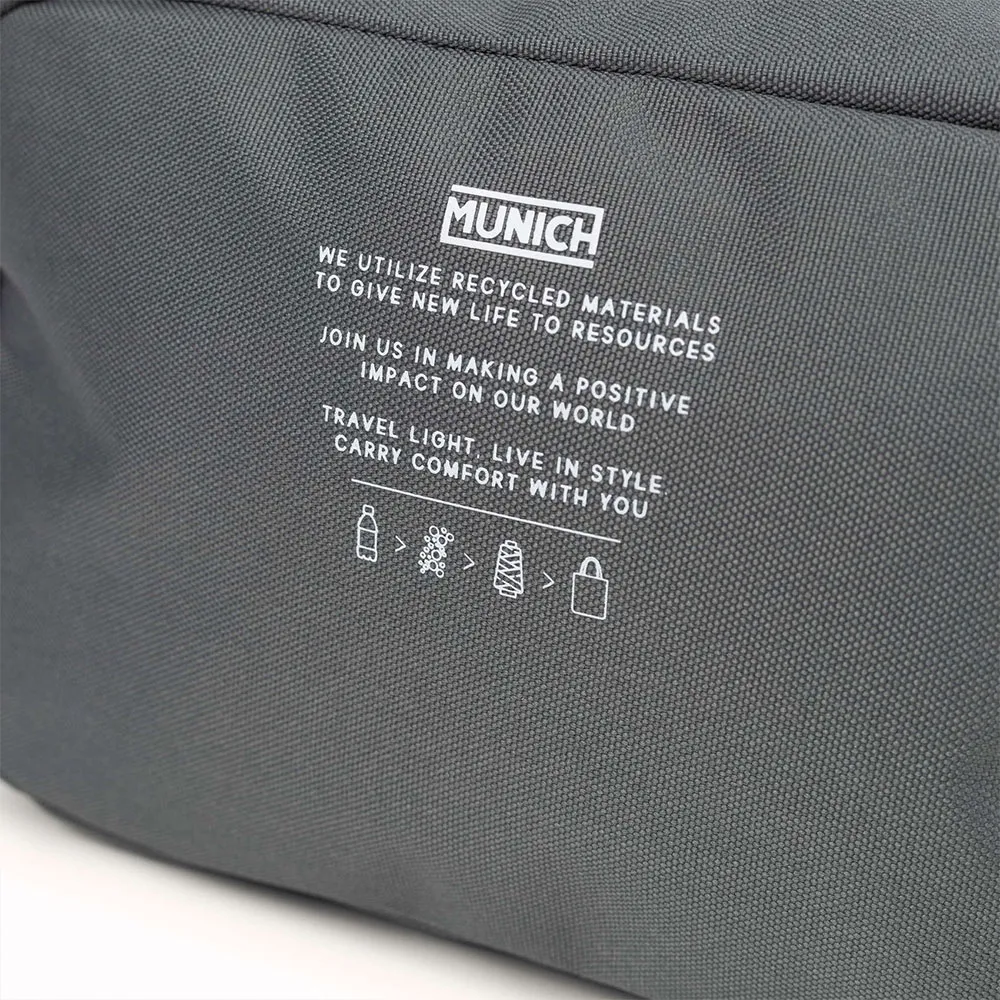 Viaje de forma mais inteligente e com estilo com a Necessaire MUNICH. Desenhada em Barcelona, esta necessaire combina um estilo urbano sofisticado com uma organização superior para o viajante moderno ou frequentador de ginásio. O seu compartimento principal espaçoso e o bolso frontal de acesso rápido mantêm os essenciais organizados e seguros. Fabricada em poliéster reciclado e durável, é uma escolha resistente e ecologicamente consciente. A prática alça lateral permite fácil transporte ou pendurar, simplificando a sua rotina em qualquer viagem. É o acessório definitivo para uma organização sem esforço e com estilo