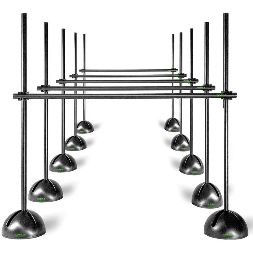 Seja em slaloms ou percursos, o conjunto de barreiras de agilidade oferece inúmeras combinações de saltos, sprints e corridas que maximizam. O conjunto consiste em 14 barras, 10 pés e 6 clipes de conexão e pode ser montado de forma rápida e fácil. Graças à bolsa incluída, as barreiras de treinamento podem ser facilmente armazenadas e transportadas. A TOOLZ oferece mais de 70 produtos de treinamento nas categorias de treinamento de força, coordenação, brincadeiras divertidas, alongamento e ioga. Mais variedade e dinamismo no seu treinamento. Com o equipamento de fitness inteligente.