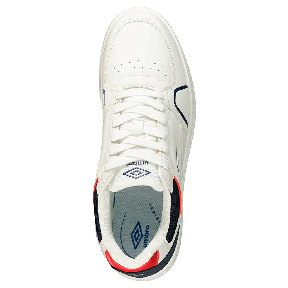 Os Tênis UMBRO Pablo em Branco/Marinho/Vermelho são sapatos masculinos elegantes projetados para uso casual e atividades esportivas. Esses tênis apresentam um design clássico de cano baixo com uma combinação de cores que adicionam um toque de sofisticação a qualquer roupa. A cor base branca é complementada por acentos em azul marinho e vermelho, criando um visual vibrante e atraente.