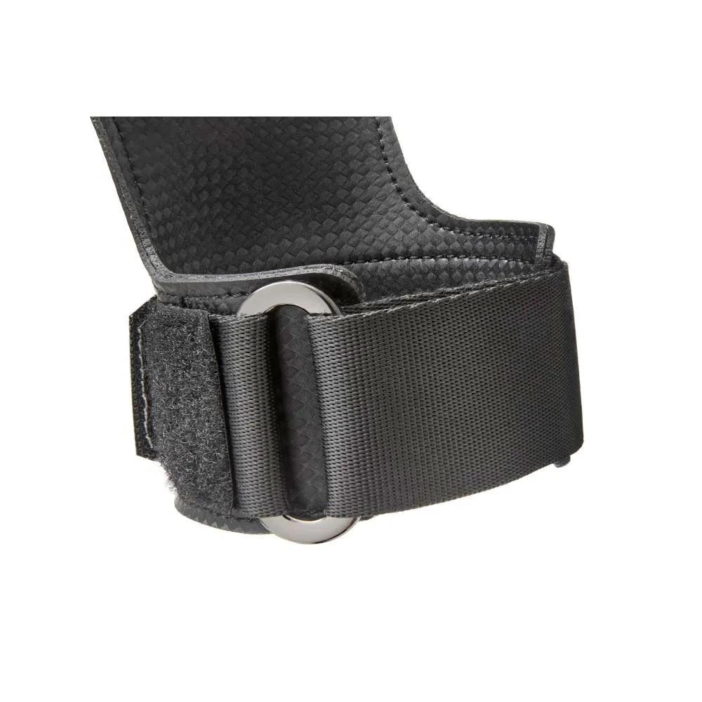 Säker kardborreknäppning runt handleden med metall D-spänne.