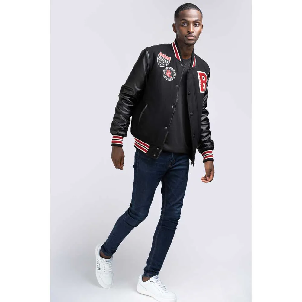 Kanalisera ett arv av mästare med BENLEE Francis Jacket. Denna klassiska varsityjacka kombinerar en premium ullblandad kropp med slående ärmar i läderlook för en autentisk retroestetik. Inspirerad av amerikansk college-stil och boxningsarv, levererar den både värme och robust stil. En dubbel dragkedja och knappstängning ger överlägset vindskydd, medan ribbade muddar säkerställer en tät, bekväm passform. Den djärva Benlee-texten som pryder ryggen gör ett tydligt uttalande och skapar den perfekta jackan för den moderna mannen med uppskattning för tidlös kvalitet