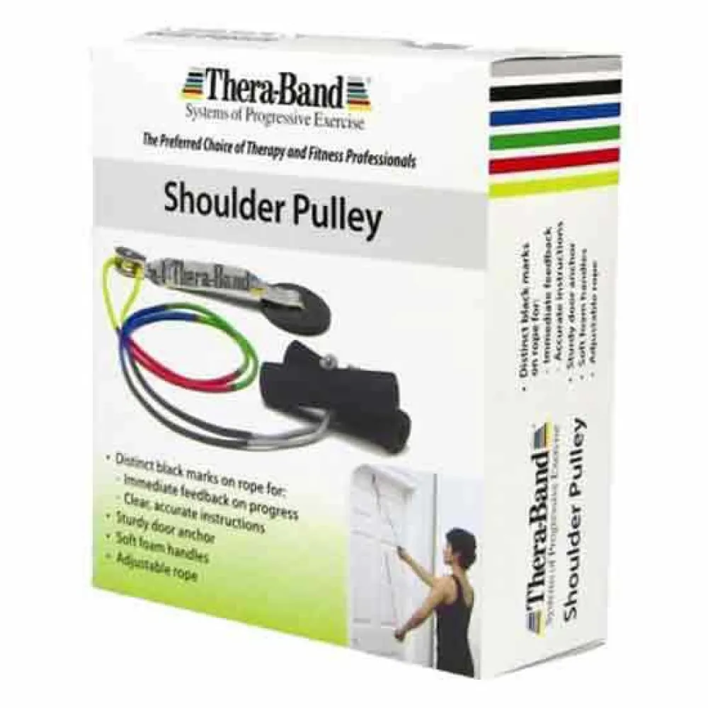 THERABAND Shoulder Pulley Black är en utmärkt träningsutrustning för alla som vill förbättra sin axelflexibilitet och styrka. Detta träningsband är designat för att ge ett jämnt och kontrollerat rörelseomfång, vilket hjälper till att förebygga axelskador och påskynda återhämtningen från axeloperationer. Remskivan är lätt att sätta upp och använda, med ett bekvämt grepphandtag och justerbar rem för anpassat motstånd. Oavsett om du är en idrottare eller återhämtar dig från en skada, är THERABAND axelremskiva ett måste till din träning. Få dina axelmuskler att arbeta på nolltid med detta effektiva och hållbara träningsband!
