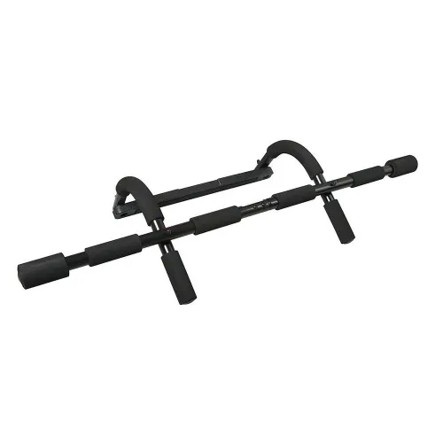 Denna multifunktionella träningsstång kan snabbt installeras i en dörröppning men kan också användas på golvet för en mängd olika riktade träningsövningar.