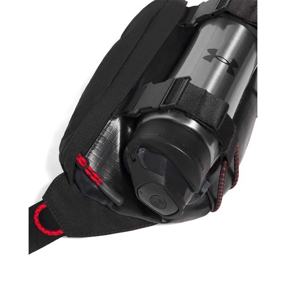 - Vattenavvisande UA Storm-teknik håller dina nödvändigheter torra - Tåligt ripstop- och PU-material med dragkedjeförsett huvudfack - 2 inre fickor och bakficka med dragkedja - Låg profilspänne med elastisk snörning framtill för att förvara en jacka eller vattenflaska för enkel transport - Justerbar vävrem med fästpunkt för nycklar.