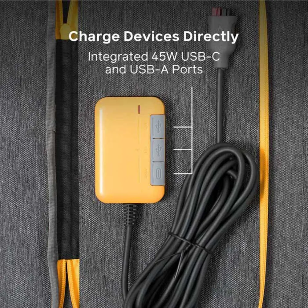 - Integreret USB-C-port er klassificeret til 45W til kraftig direkte opladning til bærbare computere, tablets. og mere.