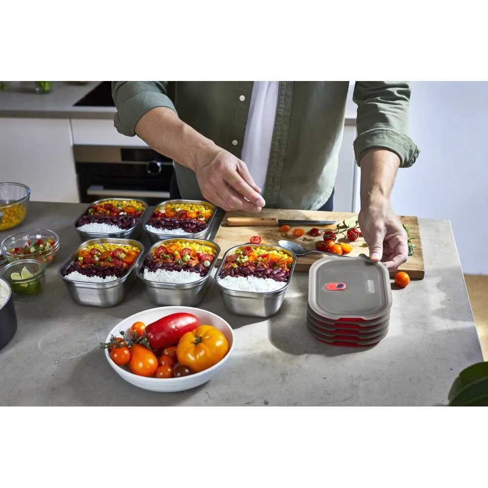 Fremstillet af 304/18-8 fødevaregodkendt rustfrit stål, er disse beholdere 100% lækagesikre, takket være deres vakuumforseglede lufttætte låg, som holder maden frisk og forhindrer spild.