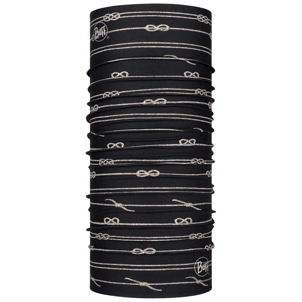 Omfavn havets ånd med BUFF® Knots halsvarmeren. Som en del af livsstilskollektionen Nautical Collection er denne legendariske multifunktionelle tube nu mere komfortabel og bæredygtig end nogensinde. Fremstillet af genbrugsmaterialer giver dens sømløse 4-vejs Ultrastretch-teknologi en perfekt pasform og topkomfort. Den tilbyder UPF 50+ solbeskyttelse og transporterer fugt væk for at holde dig tør og komfortabel under højintensive aktiviteter som vandring, cykling eller løb. Nyd alsidig, helårsbeskyttelse med et design inspireret af livet ud over de blå horisonter