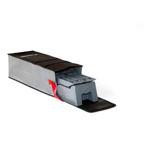 Denne opbevaringspose med skulderrem er lavet af vaskbar polyester til opbevaring af Level Up Jumbo, Level Pro og Level System Magnum. Inkluderingen af en stærk, behagelig skulderrem gør det helt ubesværet at bære dit nivelleringssystem fra køretøjet til pladsen – og tilbage igen. Ikke mere akavet jonglering med individuelle klodser; posen giver dig mulighed for at transportere hele dit system på én gang. Når den ikke er i brug, holder den dine nivelleringsklodser pænt opbevaret sammen, beskytter dem mod ridser og skader, samtidig med at den forhindrer dem i at rasle rundt under transport. Det robuste materiale sikrer, at det kan håndtere vægten og den robuste form af nivelleringsklodserne, hvilket giver en holdbar løsning, der vil holde til utallige eventyr. Det lette rengøringsstof betyder, at en hurtig skylning eller aftørring er alt, hvad der skal til for at holde selve posen frisk og klar til din næste rejse.