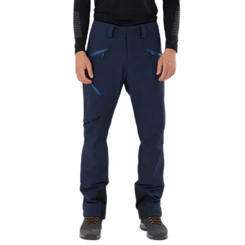 Fundango Rob Softshell Pants herresoftshellbukser er fremstillet i et svedtransporterende materiale og kan bruges til skiløb, vandreture og snowboarding med maksimal tilfredshed. Buksernes tekniske materiale opretholder den ideelle fugtighed i din krops mikroklima og din krops optimale temperatur, hvilket garanterer enestående ydeevne over længere afstande. Lynlåsforlommer holder dine vigtigste ting lige ved hånden. DWR-vandafvisende behandling forhindrer vanddråber i at sætte sig på stoffets overflade, samle sig som små perler og derefter perle af bukserne. Lynlåsåbning gør det nemt at regulere din varmeafledning. Linningen holder bukserne på plads under dynamiske bevægelser. For fuldstændig bevægelsesfrihed følger Slim Fit-snittet, de formsyede knæ og det ergonomiske design dine bevægelser med præcision. Den vandtætte lynlås holder nedbør ude, og den lynlåslukkede skaftende gør det nemt at glide ned i dine skistøvler. Snefanget forhindrer sne i at komme ind under dit tøj, selv ved store fald.