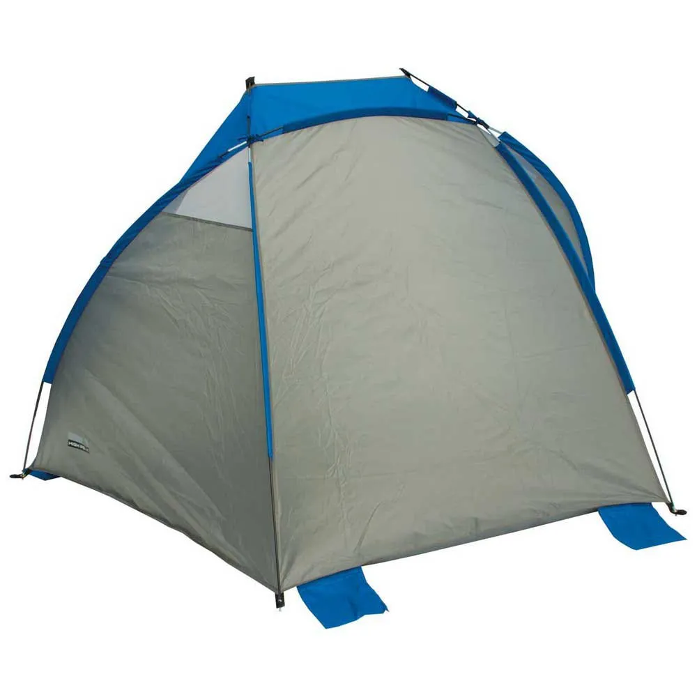 HIGH PEAK Mallorca Beach Shelter er det perfekte tilbehør til en dag på stranden. Dette blå og grå skur tilbyder beskyttelse mod sol og vind, så du kan slappe af og nyde din tid ved vandet uden at bekymre dig om at blive forbrændt eller blæst væk. Det lette og bærbare design gør det til en leg at sætte op og ned, og den robuste konstruktion sikrer, at den kan modstå alle elementer, der kommer din vej. Uanset om du leder efter et sted at slippe for solen, et sted at skifte tøj eller bare et hyggeligt sted at slappe af, har HIGH PEAK Mallorca Beach Shelter dig dækket.