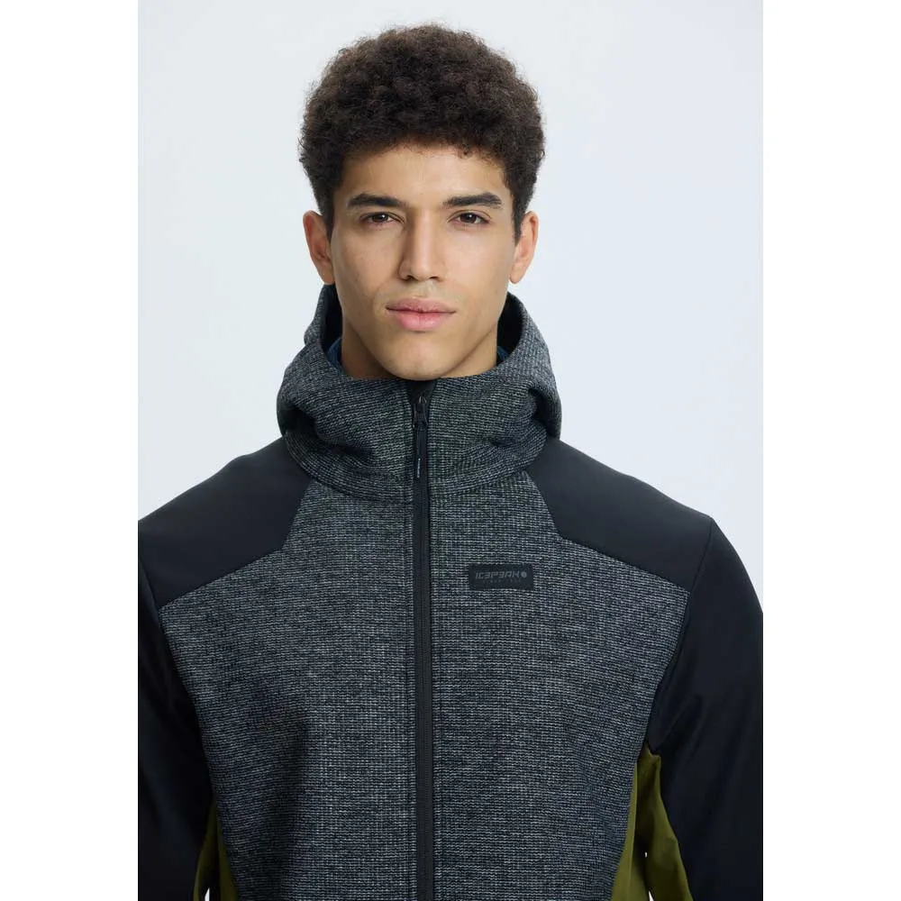 Icepeak softshell jakke til mænd. Det 4-vejs strækmateriale strækker sig i alle retninger og giver maksimal bevægelsesfrihed. Ved designet af dette A.W.S. Active produkt er der lagt særlig vægt på funktionalitet og komfort, så produktet er velegnet til både aktiv og afslappet brug. Softshell er et funktionelt materiale til en bred vifte af udendørs aktiviteter. Produktet giver vejrbeskyttelse, samtidig med at det er behageligt fleksibelt. Stoffets overflade er behandlet med en vandafvisende finish.