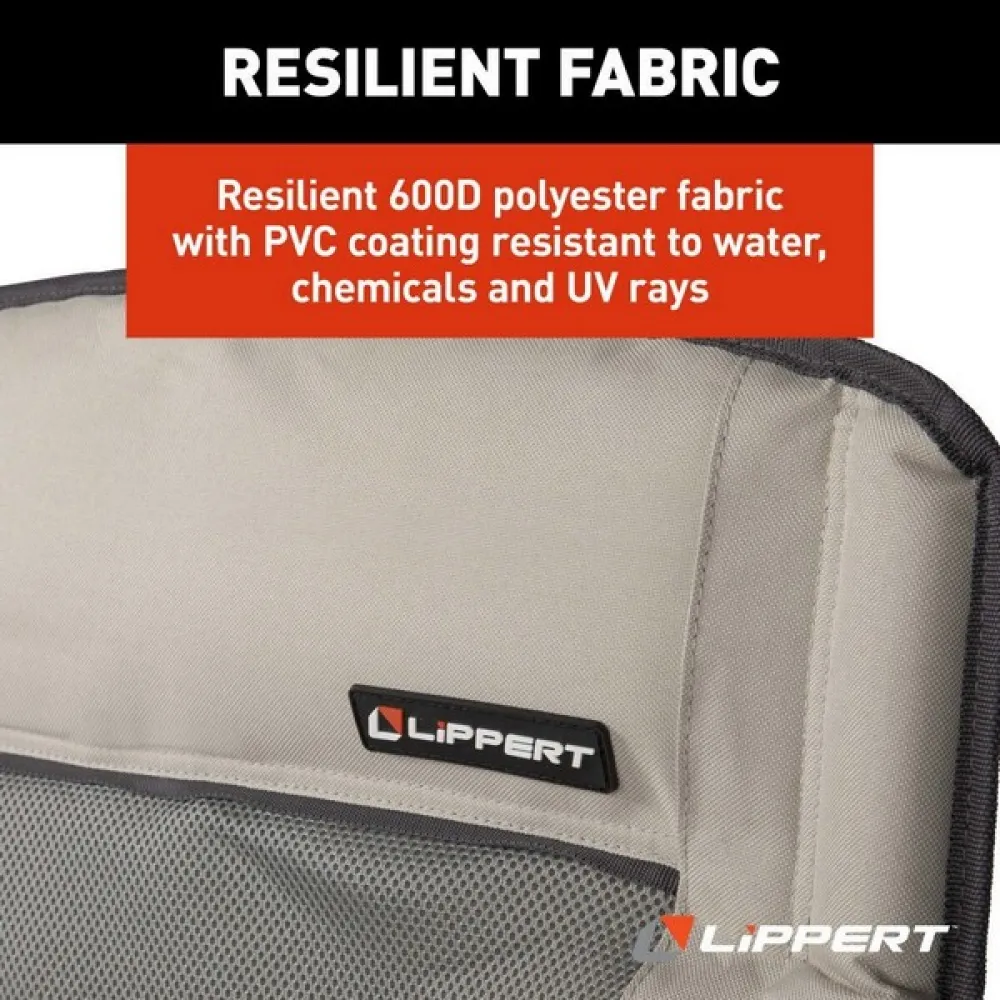 Opsætning af Lippert Scout stolen er en leg. Dens enkle foldbare design giver mulighed for hurtig og nem montering, så du kan bruge mindre tid på opsætning og mere tid på at nyde udendørslivet. Når det er tid til at pakke sammen, klappes stolen kompakt sammen og passer pænt ned i den medfølgende bæretaske, hvilket gør det nemt at opbevare og transportere. Den holdbare bæretaske har en skulderrem til bekvem hænderfri transport.