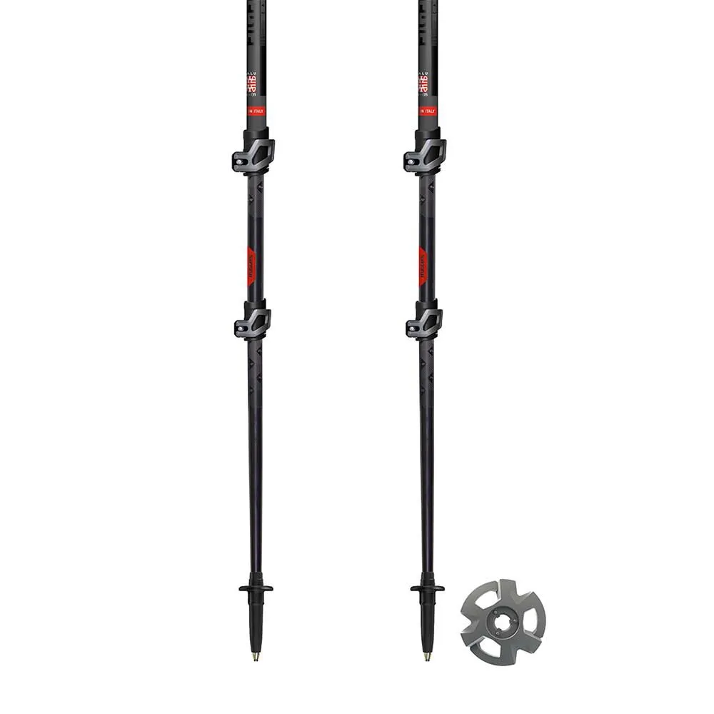 Realiseret til en ekspert vandrer, er dette en stok med høje tekniske egenskaber også til en ultra-stærk brug. Fremstillet i 3 sektioner (ø 18-16-14 mm) i Calu®Tech og AluTech 7075 for at tilbyde lethed og garantere holdbarhed og pålidelighed. Denne model er sammensat med Palmo-greb med en ekstra kort forlængelse for at tillade en hurtig brug ved at gå i højdeforskelle uden at justere sektionernes længde. Grebet har let rem med minimal spænde. Det nye blokeringssystem Wing Lock er nemt at bruge og gør det nemt og hurtigt at justere stokken. Det nye Tip-Top-system i støtten med wolframspidsen er ideel til hurtigt at udskifte kurven.