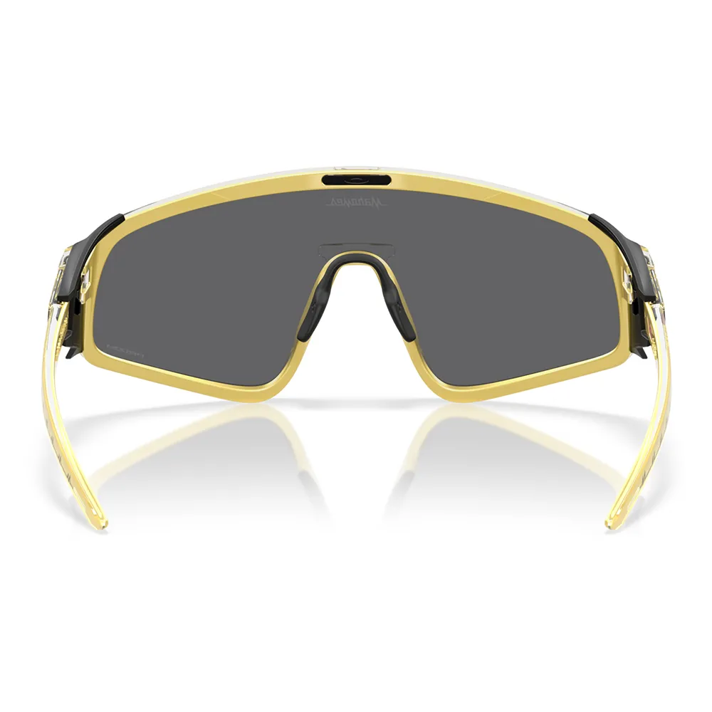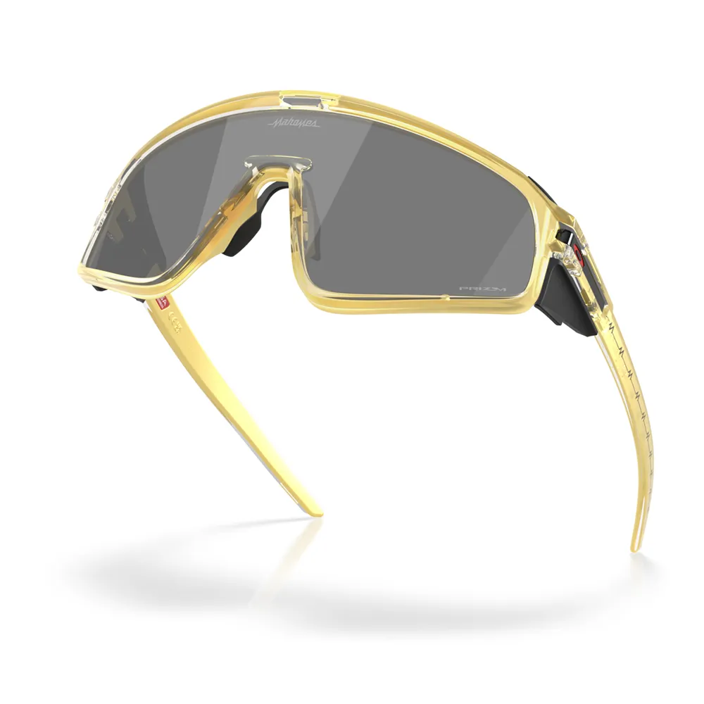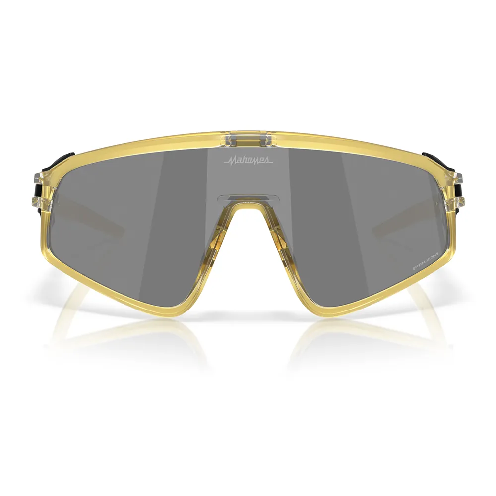 Ligesom en perfekt Patrick Mahomes-aflevering, der sendes direkte ind i endzonen, kombinerer Signature Series Latch Panel præcision med ydeevne. Den gyldne fuldrandsbrille, klare glans og glaslignende BiO-Matter™-stel giver styrke og holdbarhed, mens trepunktspasformen handler om balance og komfort. Fjern de blændfri sideskærme, og en praktisk Latch-mekanisme giver dig mulighed for at fastgøre stellet til din skjorte eller bukser. Det trofæ-gyldne tema fortsætter på stængerne, som har prægede røde Ellipse-logoer - rød for Patricks legendariske fodboldrødder - plus glans-sorte dekorationsplader og gentagne "M"-logoer.