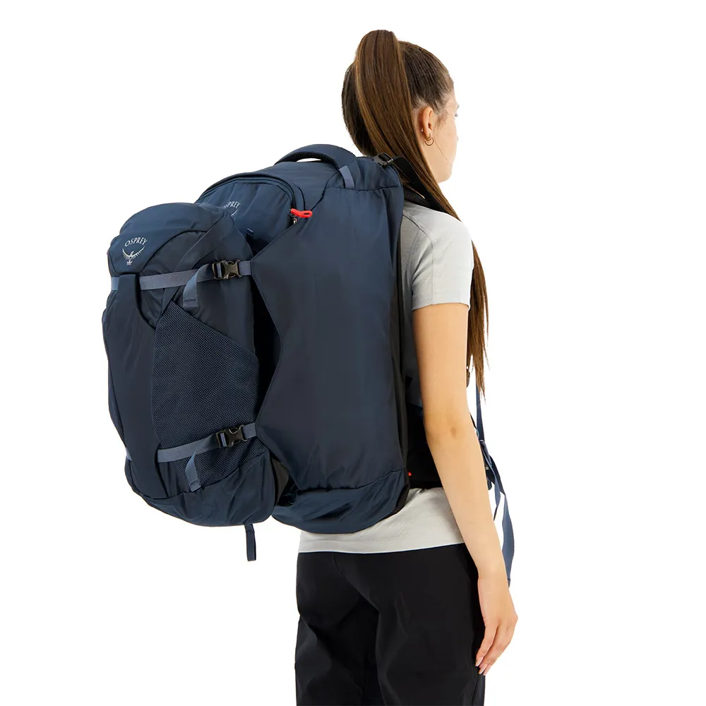 Denne alsidige 2-i-1 rejse rygsæk roses for sit højkvalitets, robuste stof og holdbare konstruktion. Den har et rummeligt hovedrum, ofte i håndbagagestørrelse, og en praktisk aftagelig dagstaske. Brugere finder den komfortabel, vellavet og perfekt til rygsækrejser. Nogle bemærkede, at dagstasken fastgøres med klips, hvilket rejser spørgsmål om sikkerhed for indchecket bagage sammenlignet med ældre modeller, der muligvis også har inkluderet en lynlås. Designet er funktionelt og komprimeres godt til rejsebrug