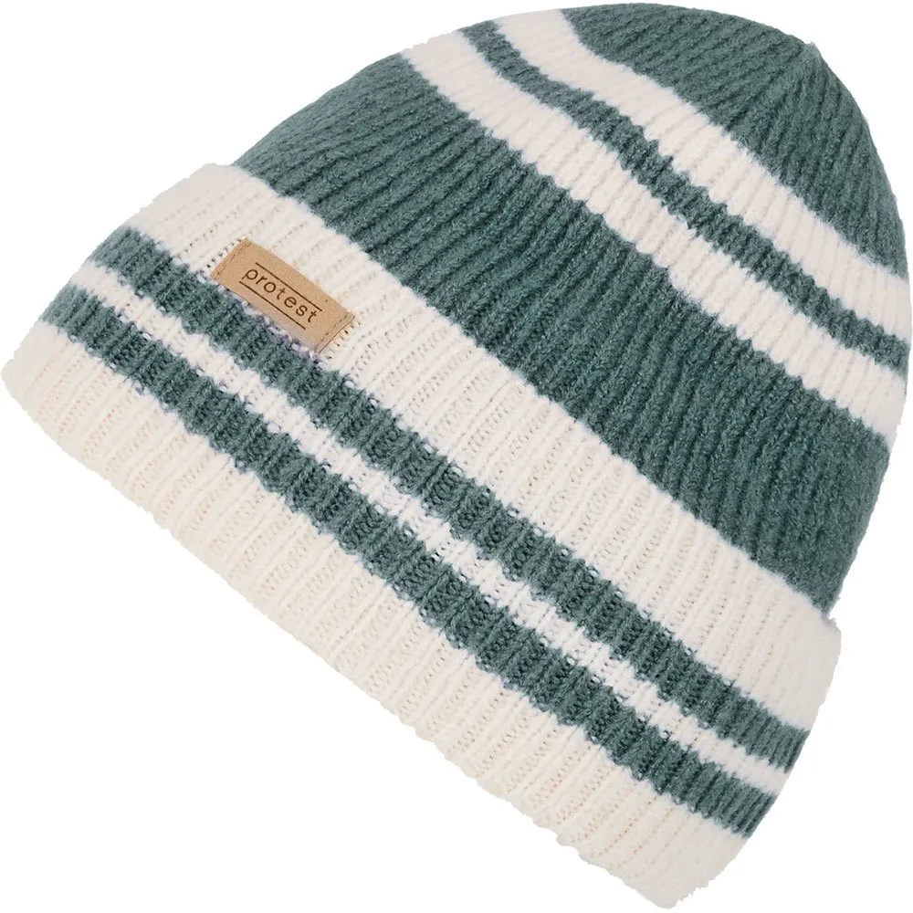 Med sin klassiske ribstrikkede struktur forbedrer Gitty hue ikke kun den termiske effektivitet ved at skabe luftlommer, der fanger varmen, men tilbyder også et tidløst look, der komplementerer ethvert outfit. Den almindelige pasform er universelt flatterende og giver rigelig dækning uden at være for slasket eller restriktiv. Afsluttet med et subtilt, men stilfuldt Protest-logo, er det et tegn på kvalitet og autenticitet, der taler til din passion for eventyr og stil. Gør PROTEST Gitty beanien til din trofaste partner til ethvert vintereventyr, fra bjergtoppen til byens gade.
