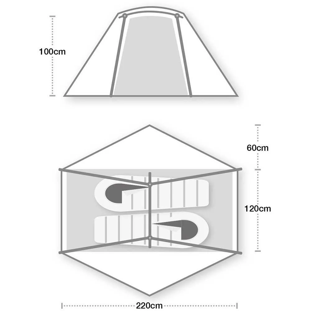 Med en kapacitet på to personer er dette telt perfekt til solorejsende eller par, der nyder at udforske den store udendørs sammen. Det har et rummeligt interiør, der giver mulighed for nem bevægelse og opbevaring af udstyr. Teltet har også to store døre til nem adgang og udgang samt to vestibuler til ekstra opbevaringsplads eller beskyttelse mod elementerne.