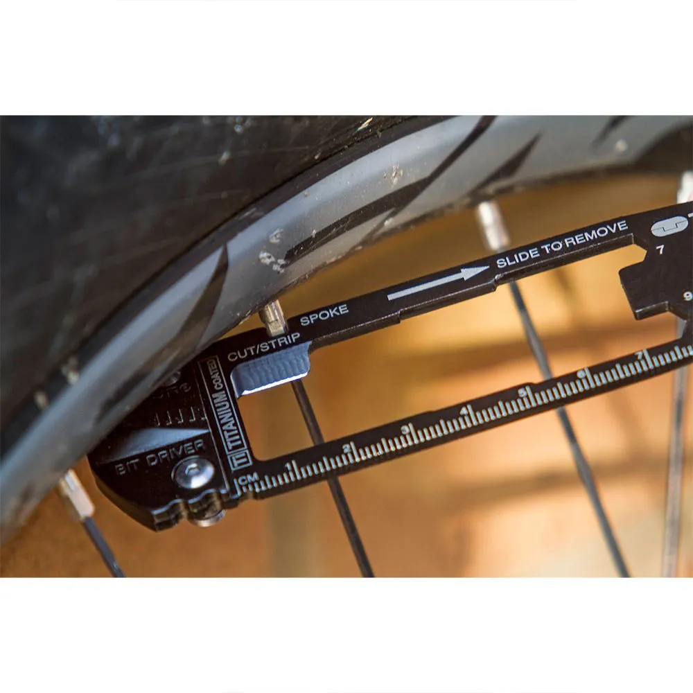 Skruenøgleværktøjet fungerer også som en hård flaskeåbner. Tectonic huser også en egernøgle, en metrisk lineal, fil og yderligere nøglestørrelser; til 6/7/8 / 9mm bolte.