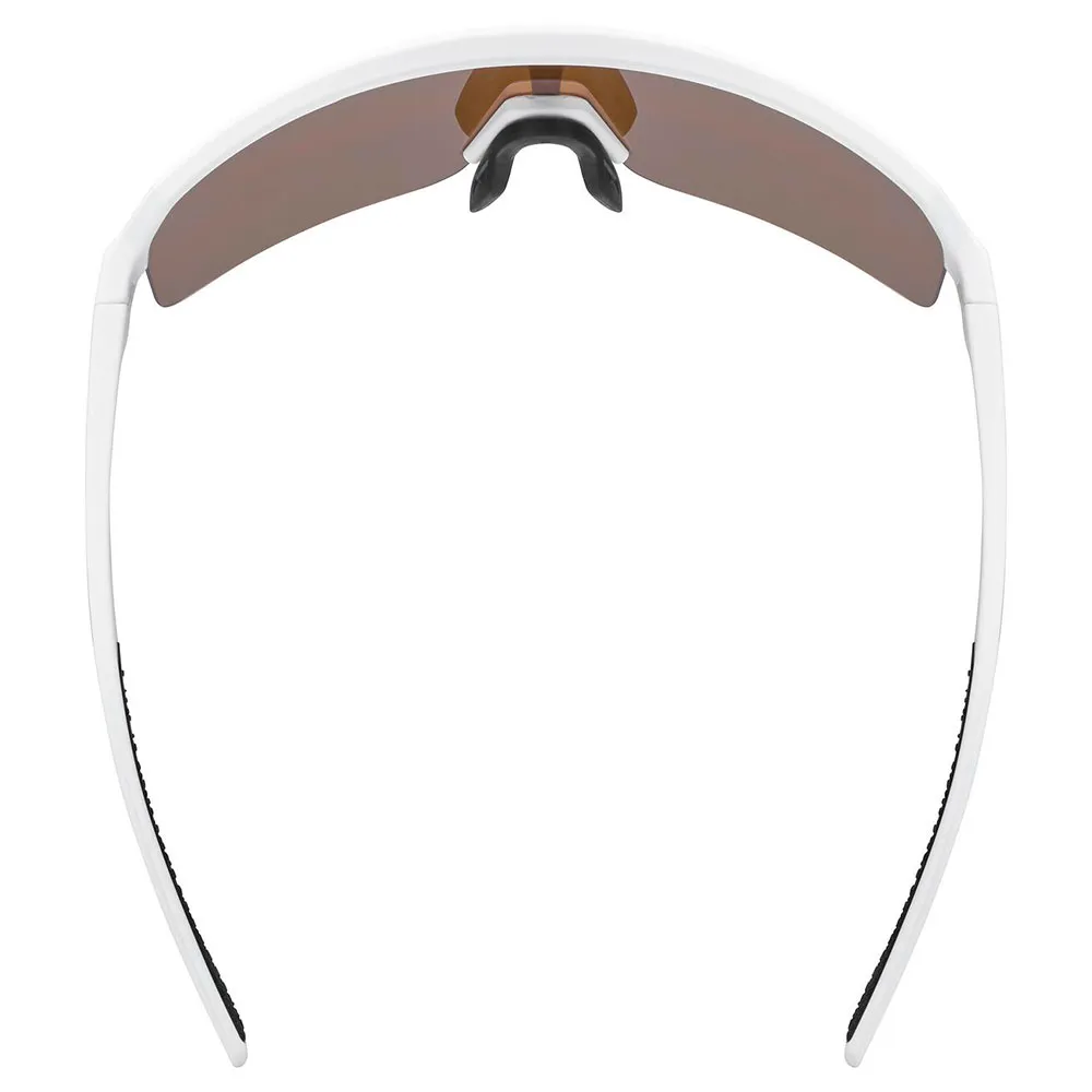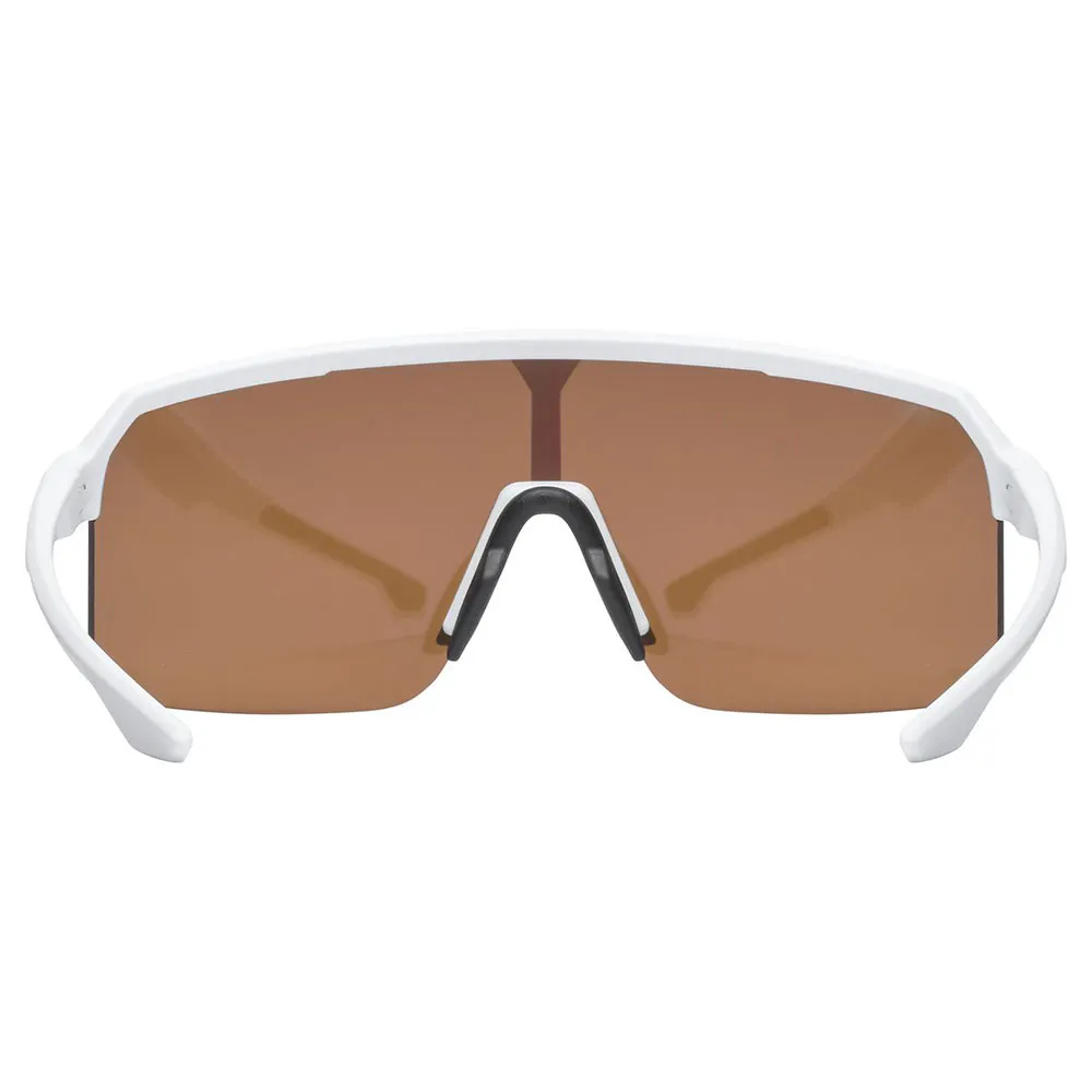 Uvex ramp solbrillerne tilbyder 100% UV-beskyttelse, spejlglas med cylindrisk form og et udvidet synsfelt takket være deres markante skjolddesign.