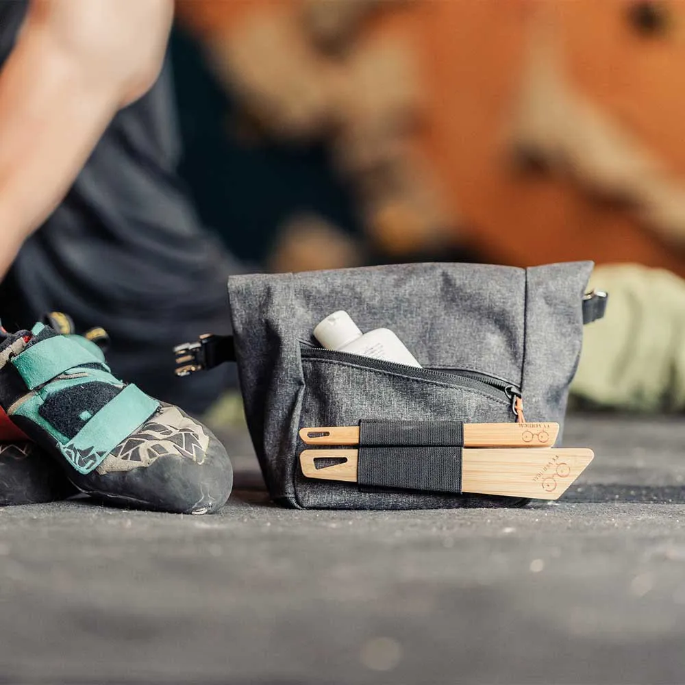 Dette gør det muligt for den at tilpasse sig komplekse form på greb og fjerne kridt fra kroge og sprækker samt fra teksturen på klatregreb for en dybderensning.