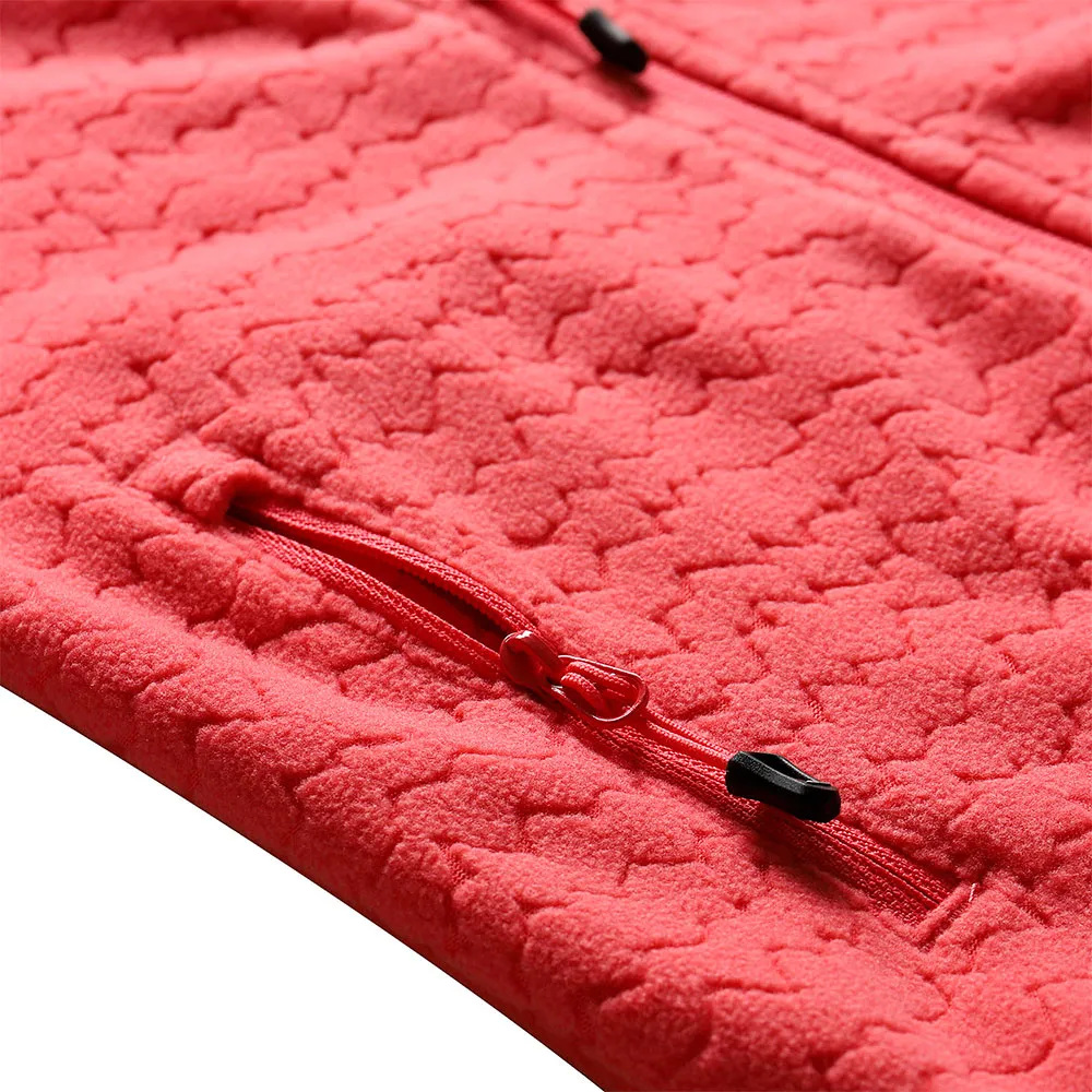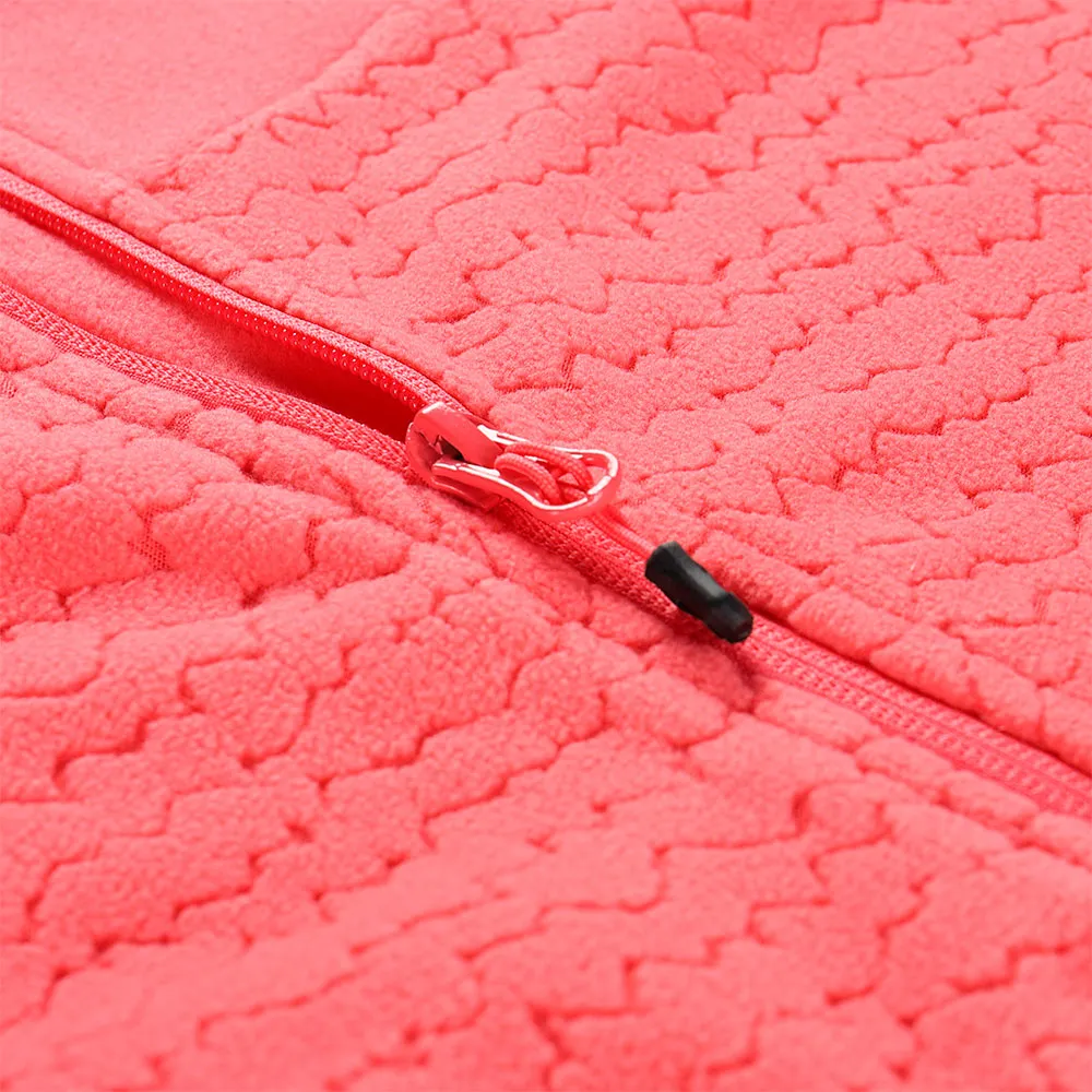 Microfleece, geprägt, reguläre Passform, verlängerter Kragen, Kinnschutz, Ärmel mit elastischem Bund, Unterteil mit elastischem Bund, Taschen insgesamt 2, Vorderseite mit Reißverschluss, Patch am Ärmel, längere Zipper für einfache Handhabung.