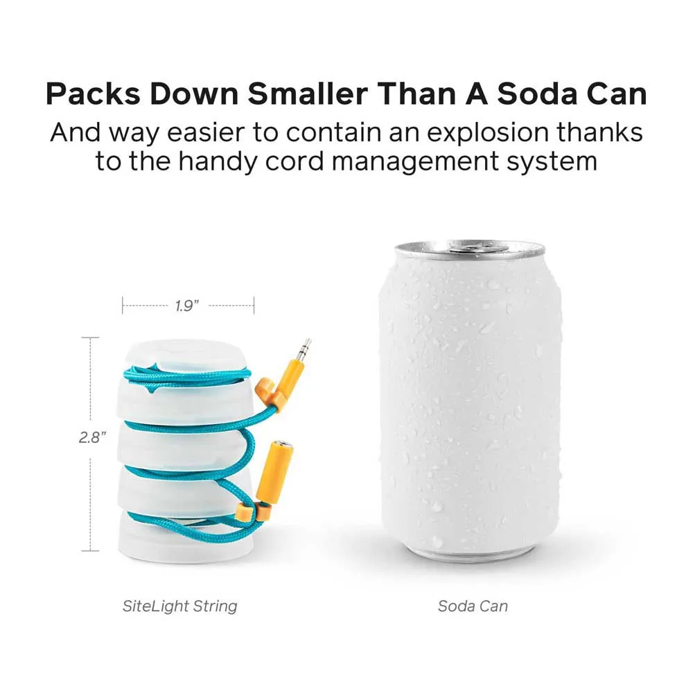 - Die Helligkeit von 150 Lumen macht den SiteLight String ideal für Umgebungsbeleuchtung und Wegfindung. Außerdem bedeutet der geringe Stromverbrauch, dass sie stundenlang laufen können, ohne viel Strom zu benötigen.