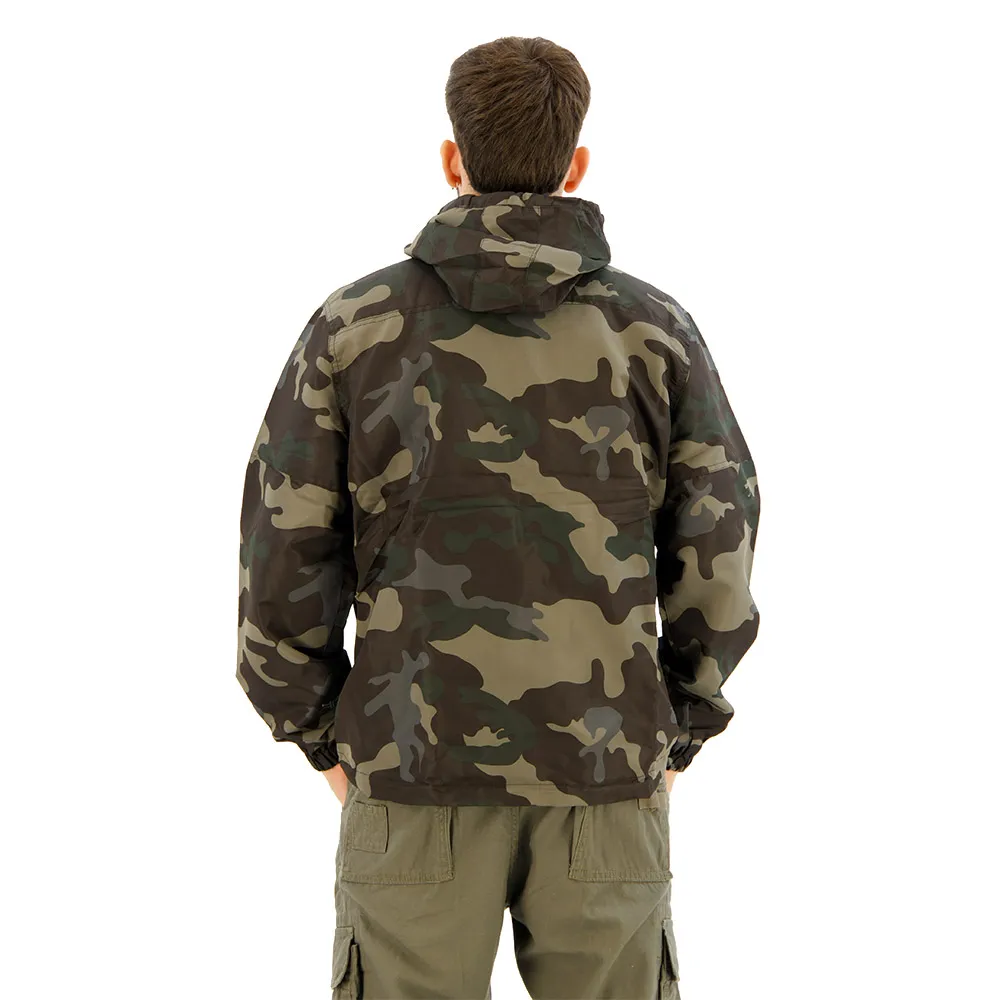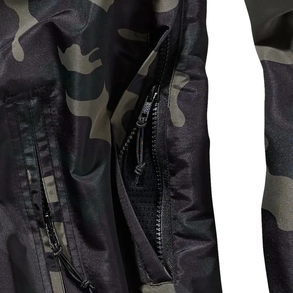 Wind- und wasserabweisend, Mesh Innenfutter, Kapuze mit Kordelzug, große Brusttasche mit Reißverschluss, zwei seitliche Taschen mit Reißverschluss, Ärmelabschluss mit Bündchen, eine seitliche Lüftungsöffnung, alle Reißverschlüße mit Zipp-Puller.