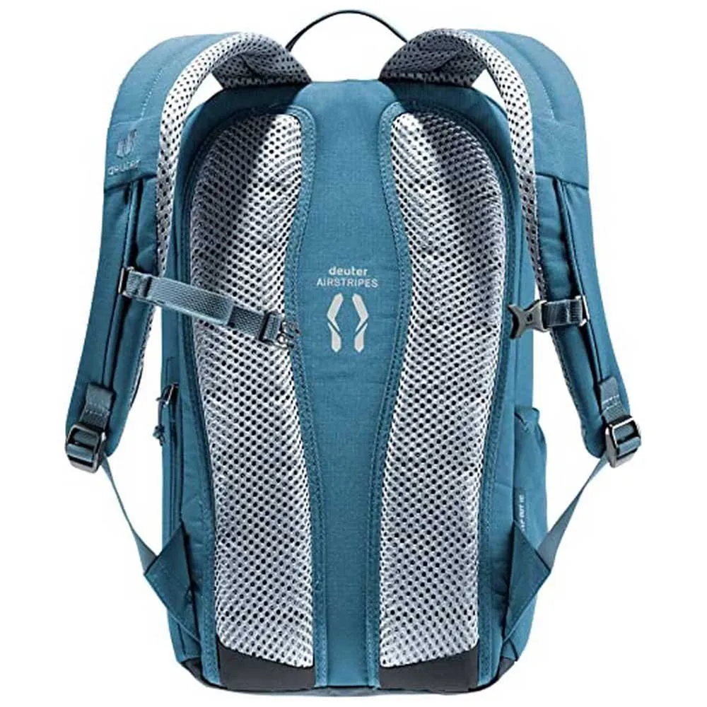 Ausgestattet mit perforierten, ergonomisch geformten Schultergurten und der reduzierten Auflagefläche des Deuter Airstripes-Rückensystems überzeugt der Stepout durch Belüftung und Tragekomfort. Eine große U-förmige Reißverschlussöffnung oben, eine Handytasche seitlich am Rücken und Stretch-Seitentaschen ermöglichen schnellen Zugriff auf wichtige Gegenstände. Im Inneren befinden sich eine Dokumententasche und ein Laptopfach für eine organisiertere Verpackung. Das PFC-freie Gewebe dieses Green Button-zertifizierten bluesign®-Produkts wird aus 100 % recycelten PET-Flaschen (20 x 0,5-Liter-Flaschen) und nach bluesign®-Standards hergestellt.