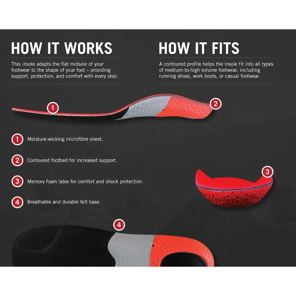 Das intelligente Design der G30 Stabilitäts-Einlegesohlen konzentriert sich auf funktionelle Unterstützung dort, wo sie am meisten benötigt wird. Das feste, strukturierte Fußgewölbe bietet eine zuverlässige Plattform, die hilft, Überpronation zu verhindern, während die weicheren Vorfuß- und Fersenbereiche eine gezielte Dämpfung für Komfort und Stoßabsorption bieten. Diese Einlegesohlen für Damen und Herren sind vollständig zuschneidbar, sodass Sie eine individuelle Passform für nahezu jeden Schuh oder Stiefel in Ihrer Sammlung erstellen können. Verwenden Sie einfach die Original-Innensohle Ihrer Schuhe als Schablone und schneiden Sie sie für eine perfekte Passform zu.