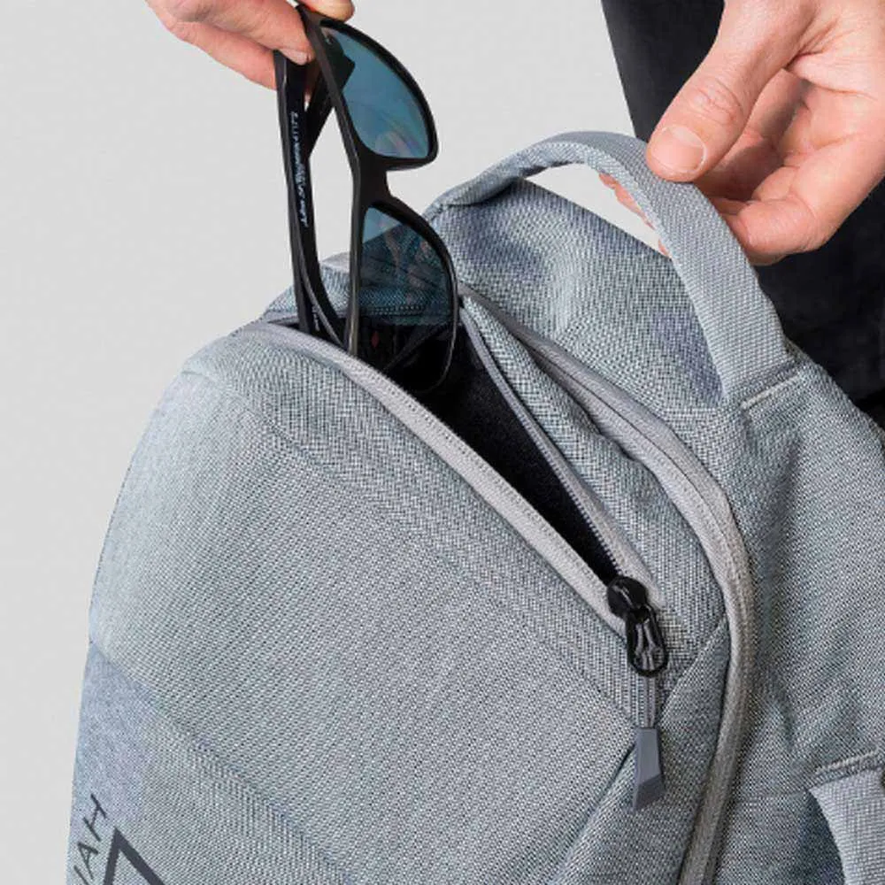 Einkammer-Rucksack, verstärktes Rückenteil, gepolsterte Schultergurte, Riemen unten zur Befestigung der Schultergurte am Rückenteil, Brustgurt, zwei Seitentaschen, Handy-Fleecetasche, gepolsterte Laptoptasche, Fronttasche mit Reißverschluss, Tasche mit organisiertem Deckel Deckel, seitliches Reißverschlussfach, seitlicher Tragegriff, kann wie ein Koffer getragen werden