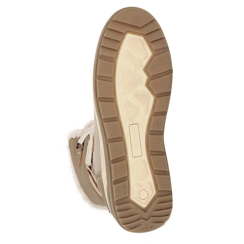Das Obermaterial bietet hervorragende Wetterbeständigkeit, während das weiche, warme Kunstfellfutter, ausgestattet mit der wasserdichten, atmungsaktiven Kimbertex-Membran, die Füße auch bei kaltem Wetter trocken und warm hält.