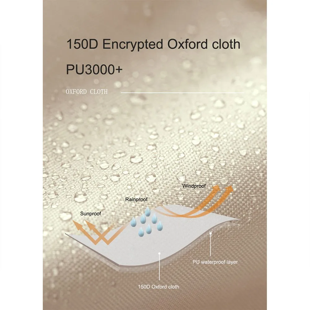Erhältlich in sechseckiger, kleiner quadratischer oder großer quadratischer Form, ist es aus strapazierfähigem, verschlüsseltem 150D Oxford-Gewebe mit einer Wasserdichtigkeit von PU3000+ gefertigt und bietet hervorragenden Schutz vor den Elementen.