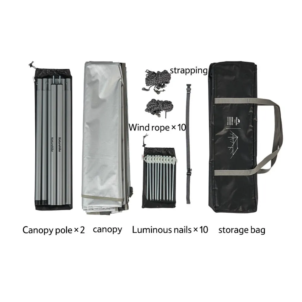 Das Naturehike Semeru Girder Shelter Tarp ist ein vielseitiges Outdoor-Vordach, das für Gruppencamping und Zusammenkünfte konzipiert ist und Platz für 4-6 Personen bietet.