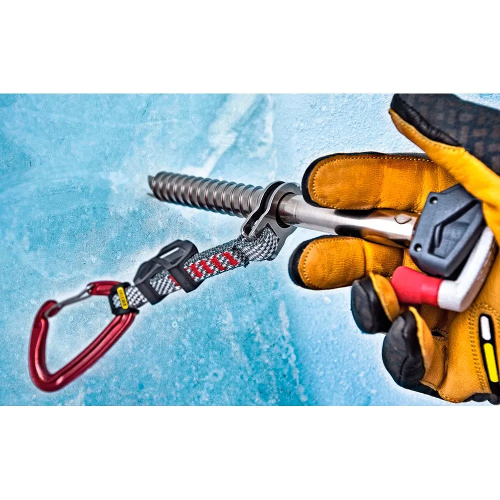 Beim Entfernen aus dem Eis kann die Schraube einfach im Seil eingeclippt bleiben und damit nicht verloren gehen.