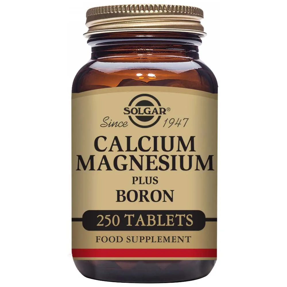 Kalzium liefert die Bausteine, die dazu beitragen, Knochen und Zähne stark und gesund zu halten. Es unterstützt auch die Gesundheit des Herzens, des Bewegungsapparates und des Nervensystems. Magnesium hilft bei der Regulierung des Kalziumtransports und stimuliert die Sekretion von Kalzitonin, einem Hormon, das den Zufluss von Kalzium in die Knochen unterstützt. Magnesium arbeitet auch mit ATP zusammen, um die Energie freizusetzen, die für die meisten Reaktionen im Körper benötigt wird. Es spielt eine wichtige Rolle bei der Proteinbildung und der gesunden Muskelfunktion. Diese Formulierung enthält auch Bor, ein Spurenelement, das den Kalziumstoffwechsel erleichtert und die Knochengesundheit fördert. Angemessenes Kalzium während des gesamten Lebens als Teil einer ausgewogenen Ernährung kann das Osteoporoserisiko verringern.