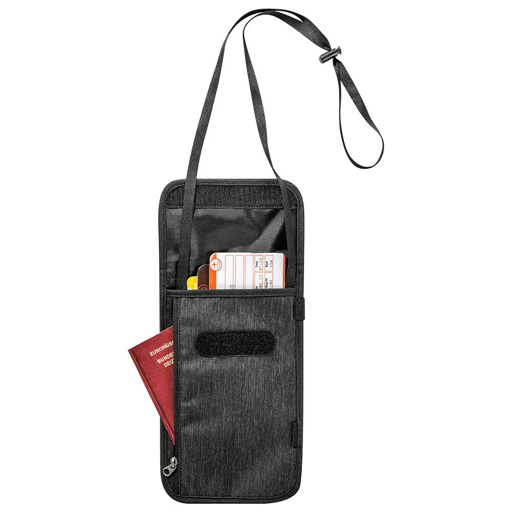 Die große Abdeckklappe des Neck Wallet hat ein integriertes Münzfach, das das große Hauptfach und ein weiteres drittes Fach abdeckt.