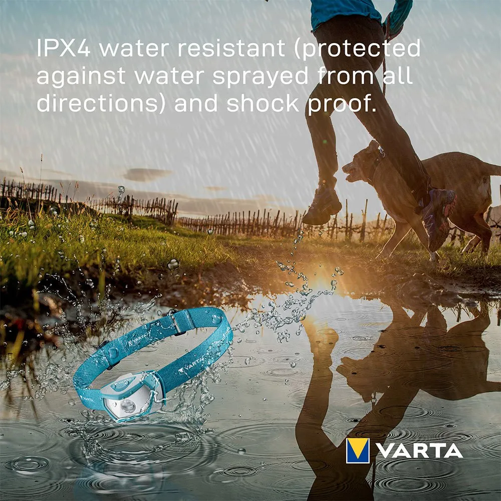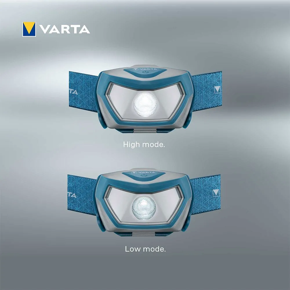 Outdoor Sports H10 Pro Varta Taschenlampe. vartas eigenes Produktdesign. robustes und elegantes Sportaccessoire in attraktiven Farben für Outdoor-Abenteuer. 2 Lichtstufen: hoch und niedrig. praktisch und toller tragekomfort durch den verstellbaren, abnehmbaren und waschbaren kopfriemen. batteriebetrieben (inkl. 3x aaa). stoßfest (2m Falltest) .ipx4 wasserfester rotierender Kopf. eine ideale Umgebungsbeleuchtung praktische Funktionen für das beste Outdoor-Erlebnis ohne Grenzen.