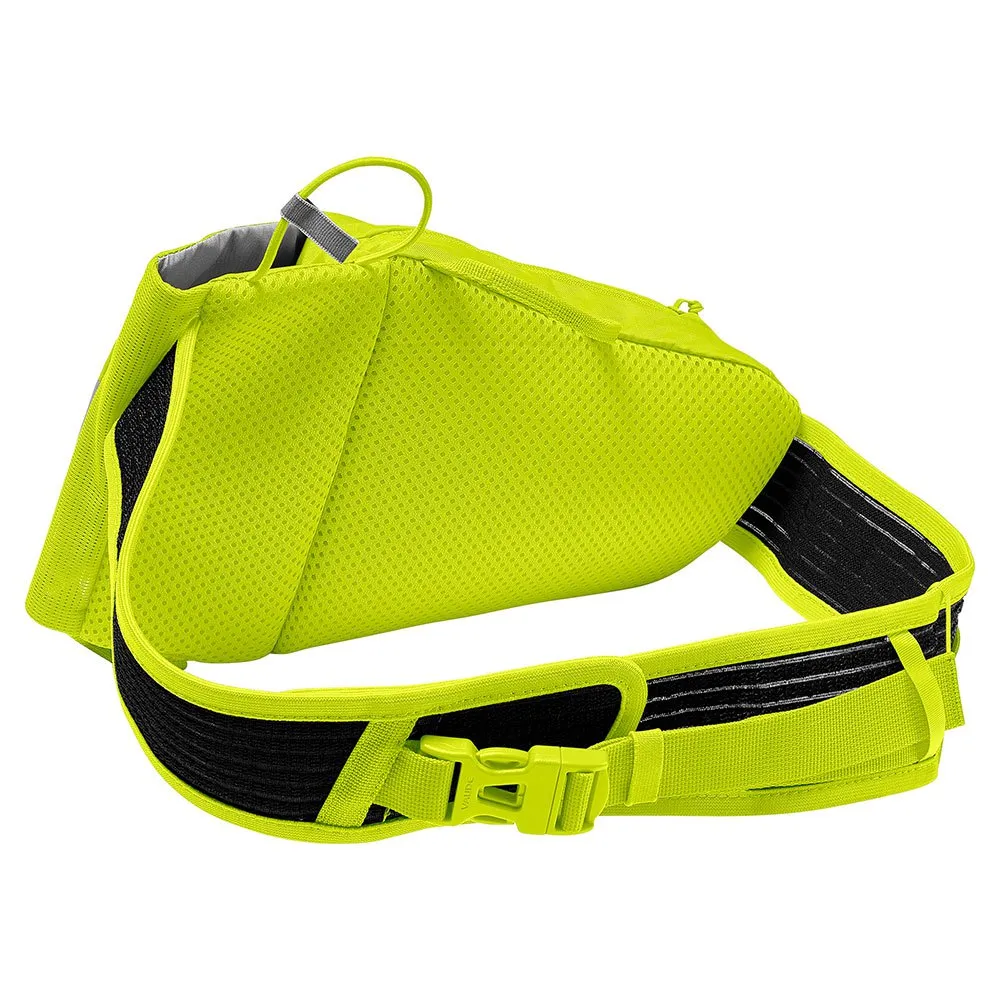 Hüfttasche mit hervorragender Stabilität für Berglauf, Nordic Walking und Langlauf mit Trinkflaschenhalter, dehnbarer Hüftgurt, reflektierende Elemente aus hauptsächlich recycelten Materialien.