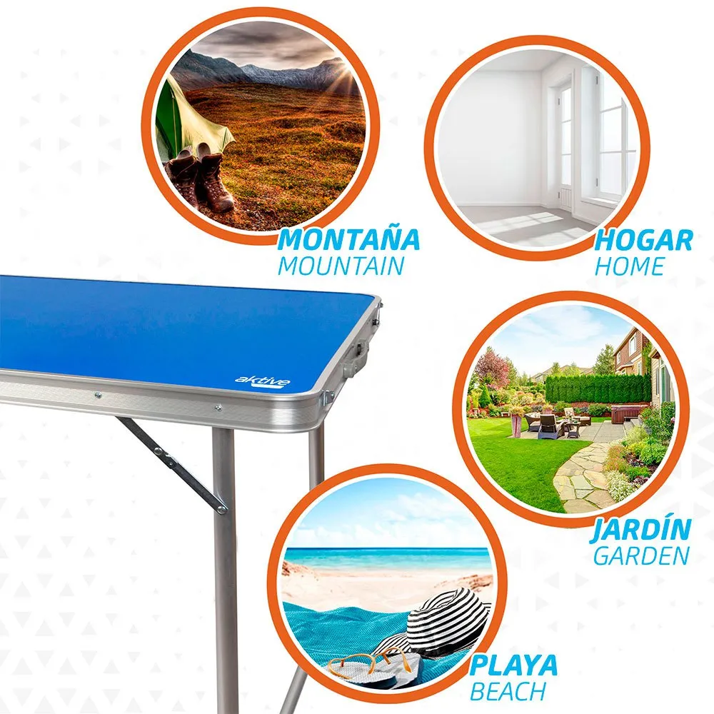 Aktive folding camping ping pong table, with a sturdy aluminum frame (25 mm thick), a non-slip wooden tabletop and a fixing system on the legs and the tabletop to secure the closure or fix it when open .