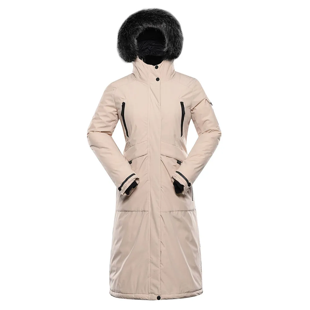 The fixed hood with a cozy inner collar and removable fur adds both function and flair.